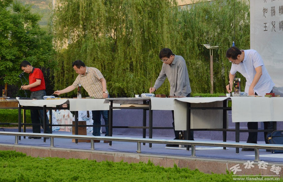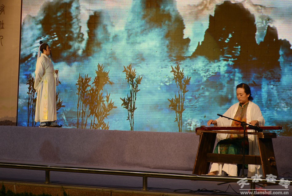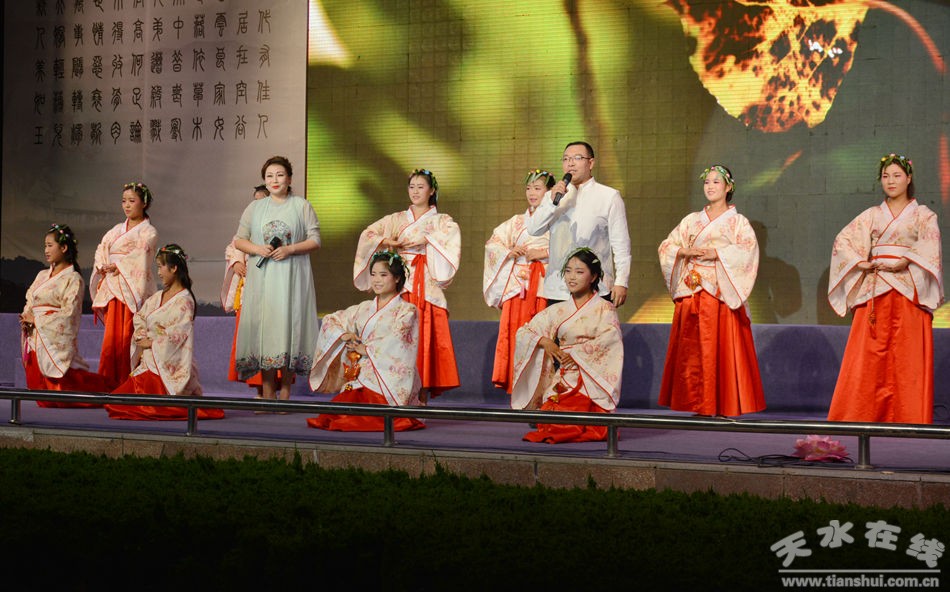 本次詩(shī)會(huì)分文化訪談及書畫創(chuàng)作《端午談詩(shī)》和節(jié)目表演三大板塊。受邀請(qǐng)的陳于柱、霍志軍、余糧才三位博士圍繞端午節(jié)的歷史源淵作了深刻解讀,我市著名書畫家賈麗珠、周宇春、李靖、曹寶凌進(jìn)行了現(xiàn)場(chǎng)創(chuàng)作。端午尋詩(shī)、行吟隴右、詩(shī)意天水三個(gè)篇章的節(jié)目表演,一系列詩(shī)歌朗誦、詠唱、詩(shī)樂(lè)舞等精彩紛呈的節(jié)目將本次詩(shī)會(huì)推向高潮。