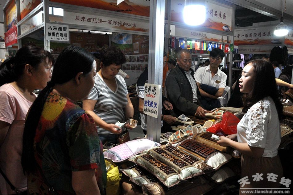 天水在線6月24日?qǐng)?bào)道 作為2018(戊戌)年天水伏羲文化旅游節(jié)重要活動(dòng)之一的“2018年全國(guó)名優(yōu)產(chǎn)品暨海峽兩岸特色商品博覽會(huì)”自6月20日在天水商貿(mào)城會(huì)展中心開(kāi)幕以來(lái),“一帶一路“國(guó)家、東南亞、中國(guó)臺(tái)灣地區(qū)以及國(guó)內(nèi)的客商云集,各地特色產(chǎn)品、旅游商品、創(chuàng)意產(chǎn)品紛份亮相會(huì)展,使這里人氣鼎盛,購(gòu)銷(xiāo)兩旺,盛況空前,呈現(xiàn)出一派繁盛的節(jié)會(huì)經(jīng)濟(jì)的動(dòng)人景象。截至目前,商品現(xiàn)貨交易已達(dá)300多萬(wàn)元,簽訂貿(mào)易合同4000多萬(wàn)元。
