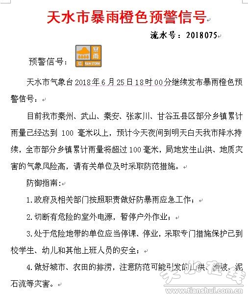 受冷空氣和高原槽東移影響,從24日凌晨開(kāi)始我市出現(xiàn)入汛以來(lái)最強(qiáng)降水天氣,截止25日17時(shí),全市共有185個(gè)雨量點(diǎn)累計(jì)降雨量超50毫米,14個(gè)雨量站達(dá)100毫米以上,最大降水量出現(xiàn)在秦州區(qū)娘娘壩鎮(zhèn)長(zhǎng)河,達(dá)130.7毫米。