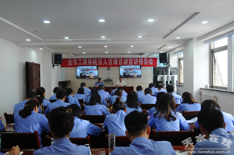 為進(jìn)一步推動(dòng)學(xué)習(xí)宣傳習(xí)近平新時(shí)代中國特色社會(huì)主義思想和黨的十九大精神,6月28日上午,市工商局舉辦了全市工商系統(tǒng)百人百課百講宣講報(bào)告會(huì)。報(bào)告會(huì)采取視頻會(huì)議的形式,在市工商局設(shè)主會(huì)場,各縣區(qū)工商局設(shè)立分會(huì)場,全市工商系統(tǒng)共400余人參加了此次宣講報(bào)告會(huì)。