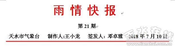 【摘要】10日凌晨開(kāi)始,我市出現(xiàn)大范圍強(qiáng)降水天氣,秦州、麥積、秦安多個(gè)監(jiān)測(cè)點(diǎn)出現(xiàn)了短時(shí)強(qiáng)降水。截止21時(shí),全市共有134個(gè)監(jiān)測(cè)點(diǎn)雨量達(dá)到暴雨,最大降水量出現(xiàn)在麥積新陽(yáng)鎮(zhèn)肖王村,達(dá)99.6毫米。
