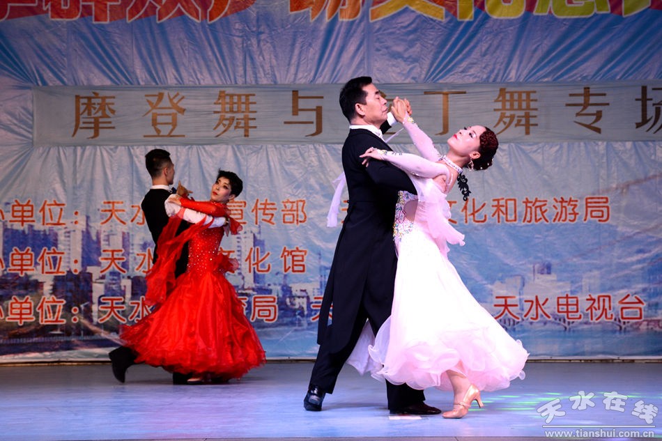 (摩登三人舞:《華爾茲、探戈套路》 演出單位:天水隴原春雨國標(biāo)舞藝術(shù)團(tuán))