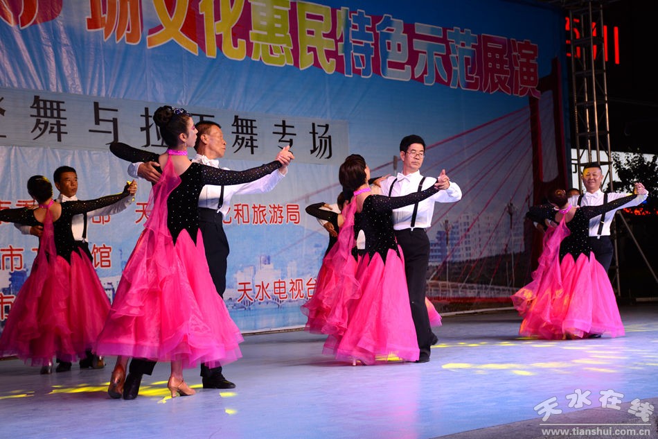 7月22日(星期六)晚8:00時(shí),由中共天水市委宣傳部、天水市文化和旅游局主辦,天水市文化館承辦的“天水市第二季廣場群眾文化惠民特色示范展演”第十場摩登舞與拉丁舞專場演出在龍場廣場精彩上演。
