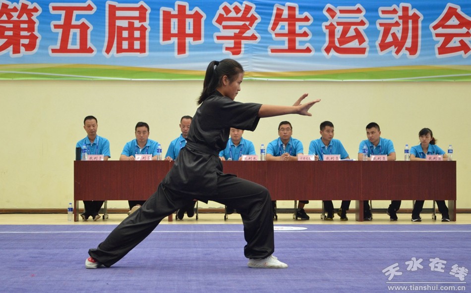 8月2日,天水市第五屆中學(xué)生運(yùn)動會武術(shù)比賽在天水一中麥積校區(qū)開賽,9支代表隊(duì)的77名運(yùn)動員參加了比賽。