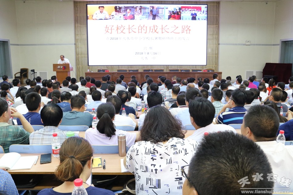 8月16日上午,天水市委常委、副市長(zhǎng)宮輝走上天水市中小學(xué)校長(zhǎng)研修班講臺(tái),為學(xué)員作題為《好校長(zhǎng)的成長(zhǎng)之路》的報(bào)告,期間,他給在場(chǎng)的校長(zhǎng)們命了三道題作為課后作業(yè),引導(dǎo)學(xué)員就如何做一名天水好校長(zhǎng)答好題、定準(zhǔn)位、找對(duì)路、履好職、謀好篇。