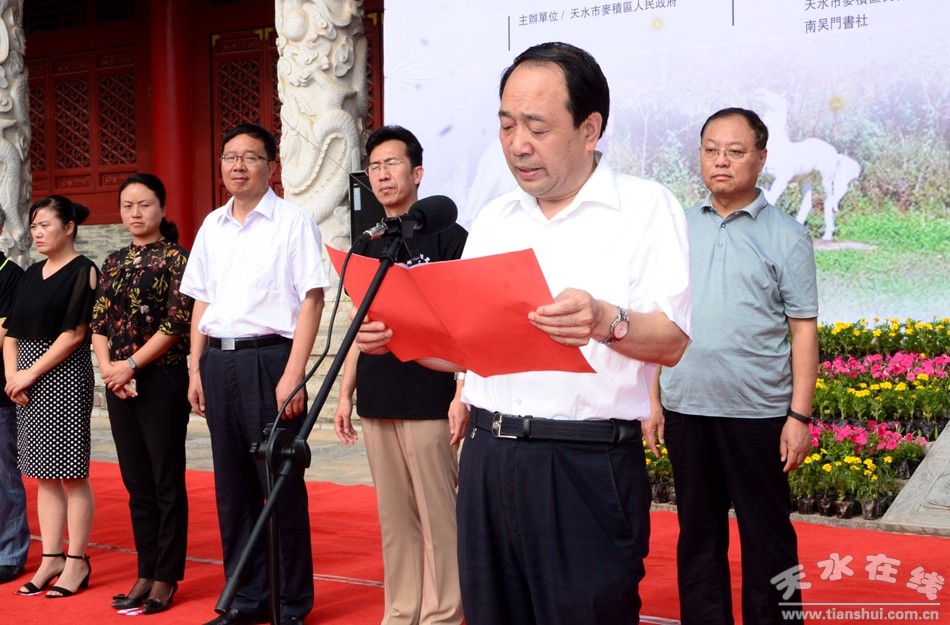 天水市人大常委會副主任安志宏宣布精品展開展。天水市政協(xié)副主席王振宇,蘭州市人大常委會副主任席飛躍,天水市人大常委會原副主任介滿盈,原蘭州軍區(qū)檔案館館長趙廣智,著名書法家、中書協(xié)培訓中心教授、南吳門書社總執(zhí)事李雙陽,省簡牘博物館科技保護部主任馬智全出席開幕式。