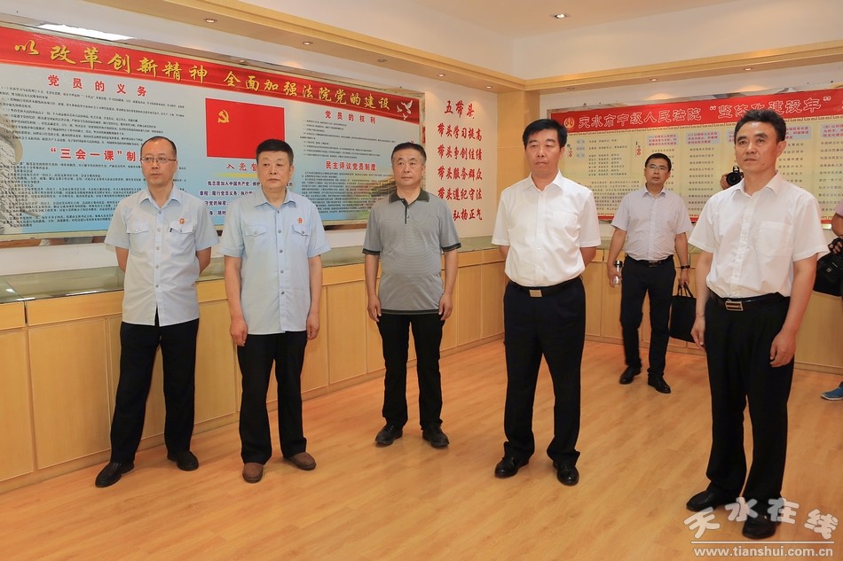 8月27日,省高級人民法院院長張海波來我市調(diào)研法院工作。他強(qiáng)調(diào),要深入學(xué)習(xí)貫徹黨的十九大精神和習(xí)近平新時(shí)代中國特色社會主義思想,牢固樹立“四個(gè)意識”,推進(jìn)司法體制改革,充分發(fā)揮司法職能,為天水經(jīng)濟(jì)社會發(fā)展提供堅(jiān)強(qiáng)的司法保障。