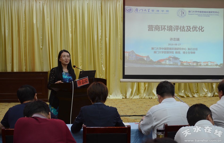 會上,廈門大學管理學院教授、博士生導師、廈門大學中國營商環(huán)境研究中心執(zhí)行主任許志端全面系統(tǒng)地介紹了世界銀行的營商環(huán)境評估指標體系和評估辦法,對天水市當前營商環(huán)境整體情況進行解讀。