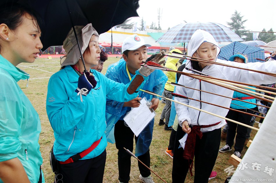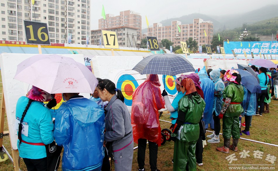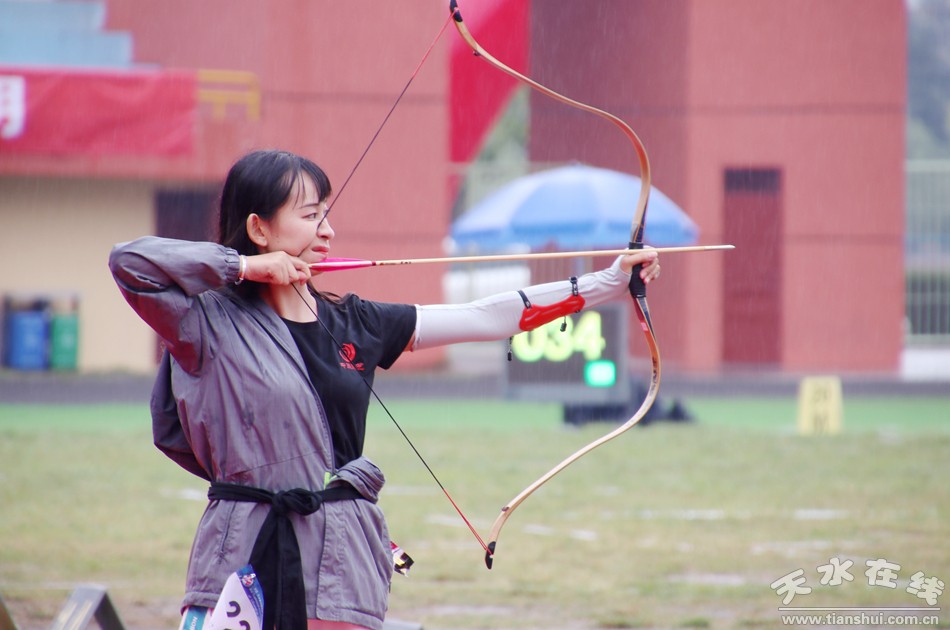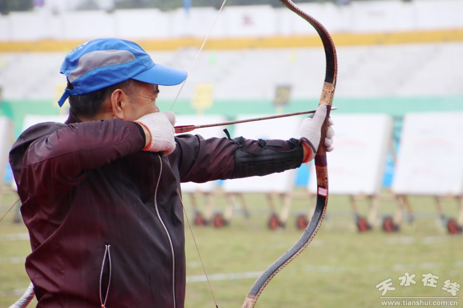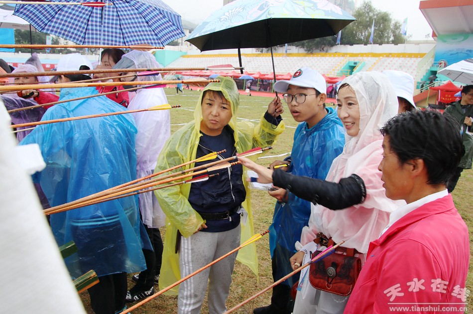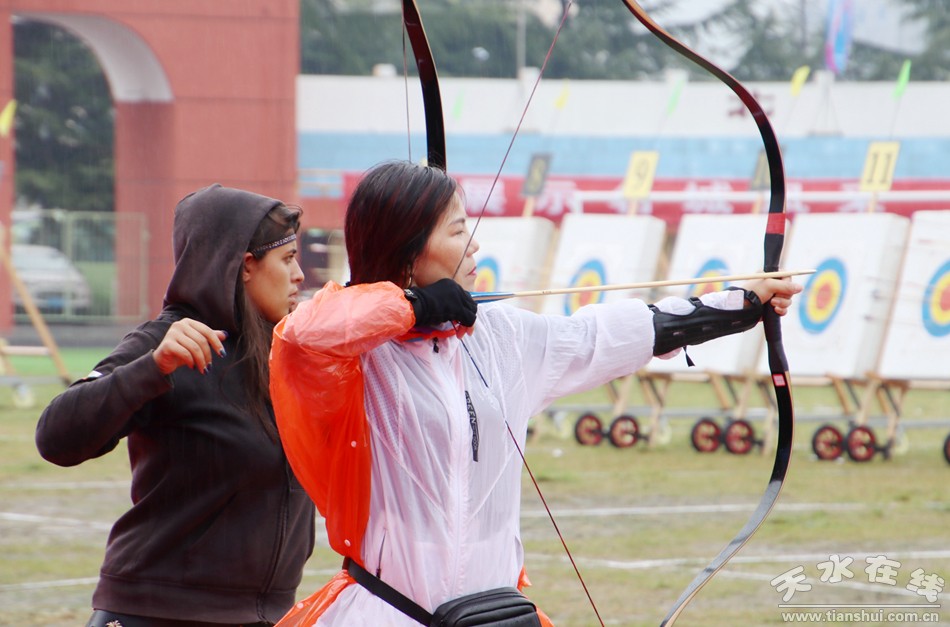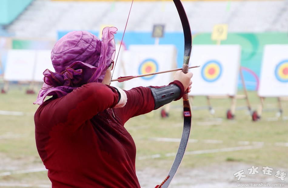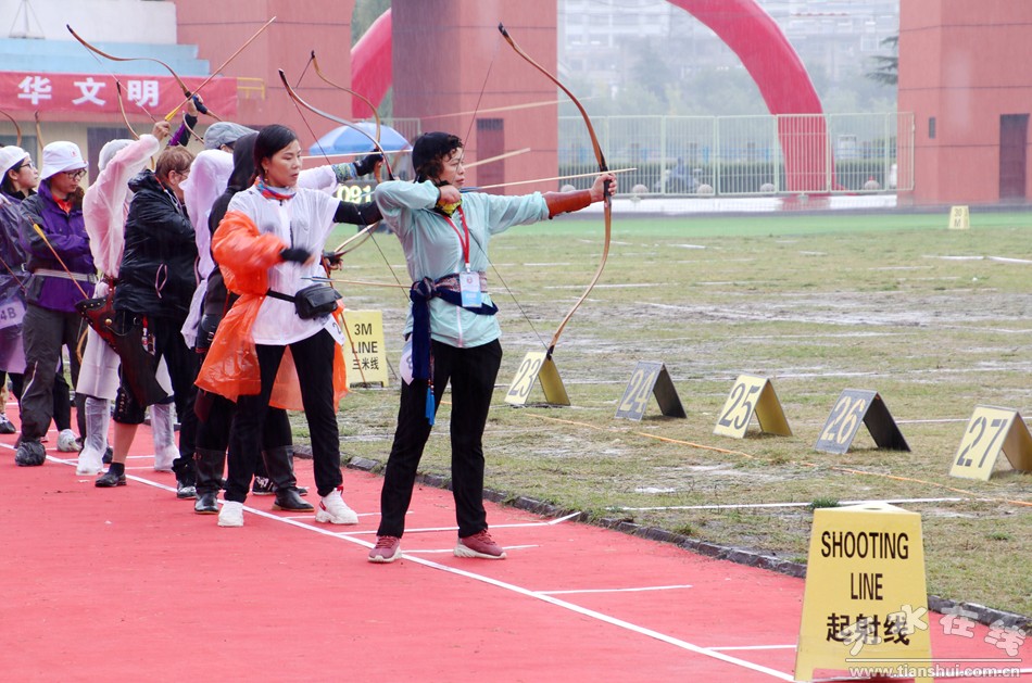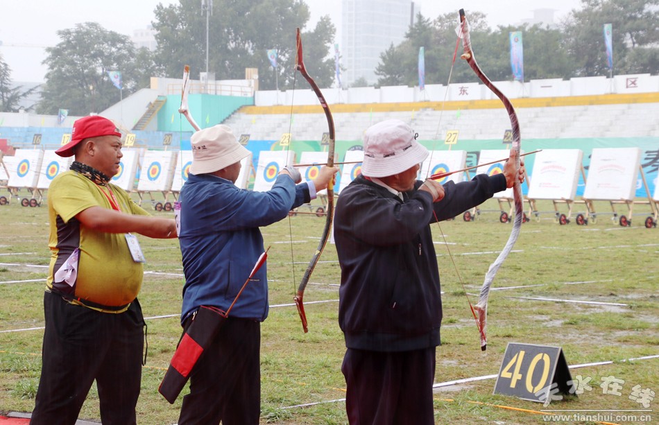 秦州區(qū)外宣辦9月13日訊(劉可 趙鋒 攝影:天水在線)第四屆“李廣杯”國(guó)際傳統(tǒng)射箭錦標(biāo)賽第二天的比賽是在雨中進(jìn)行的。不期而遇的雨天絲毫沒(méi)有影響選手們的參賽激情。成人組的選手們?cè)谟曛袕埞罴徽股渌嚒?