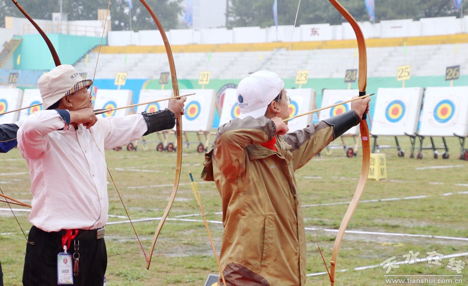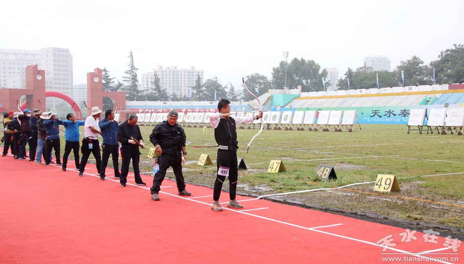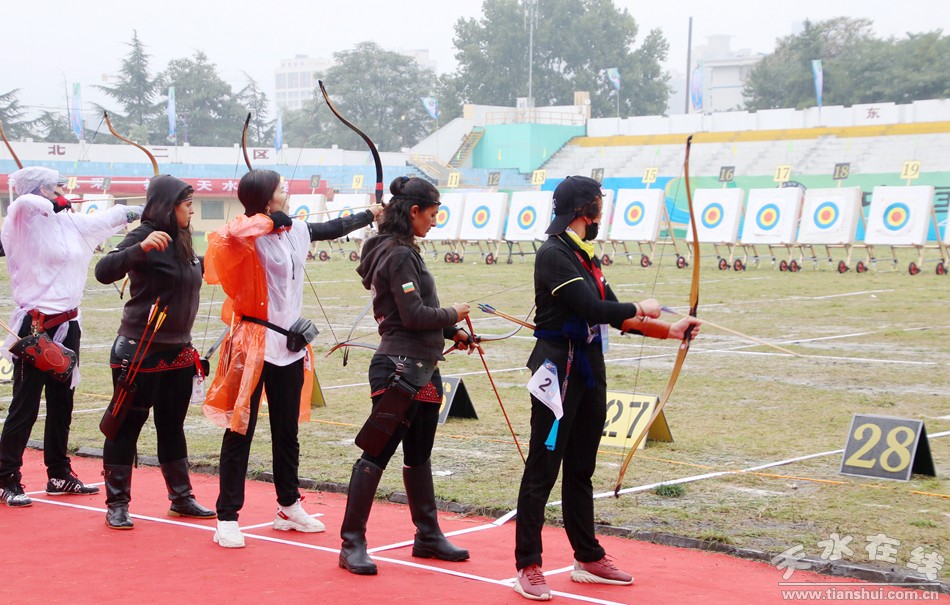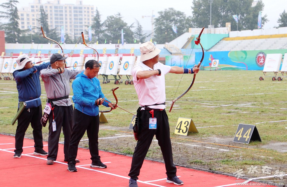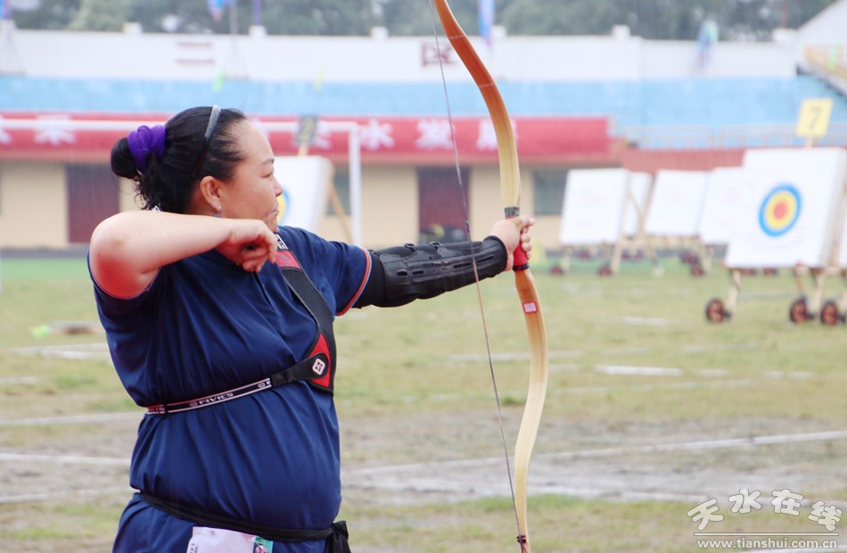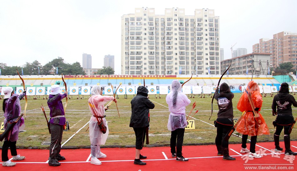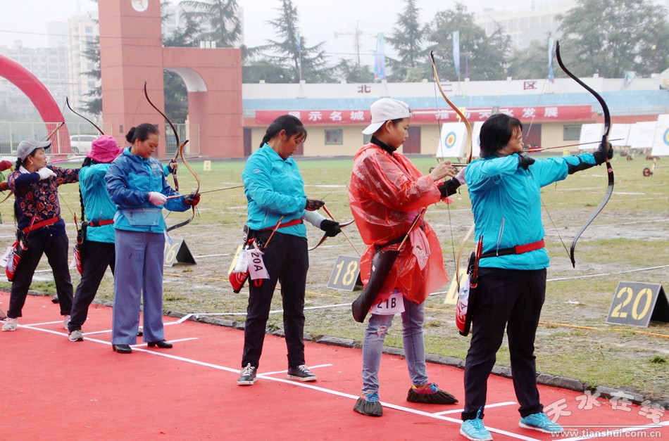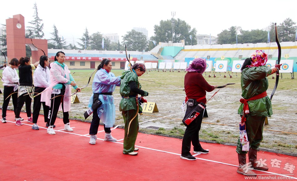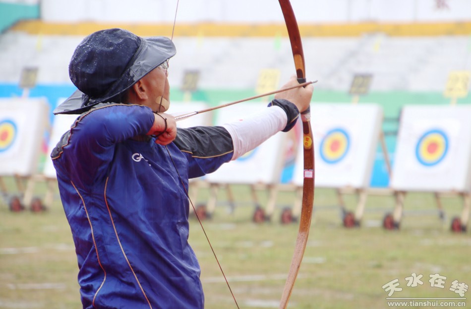 秦州區(qū)外宣辦9月13日訊(劉可 趙鋒 攝影:天水在線)第四屆“李廣杯”國(guó)際傳統(tǒng)射箭錦標(biāo)賽第二天的比賽是在雨中進(jìn)行的。不期而遇的雨天絲毫沒(méi)有影響選手們的參賽激情。成人組的選手們?cè)谟曛袕埞罴徽股渌嚒?