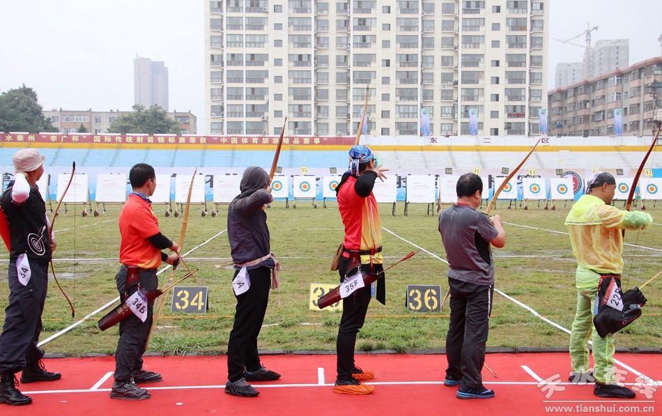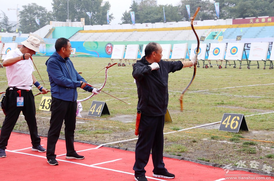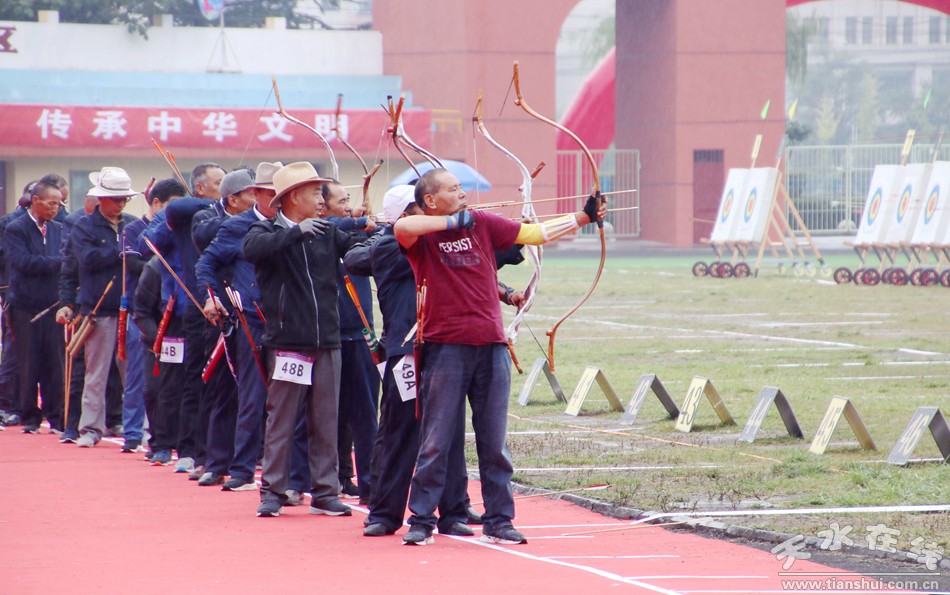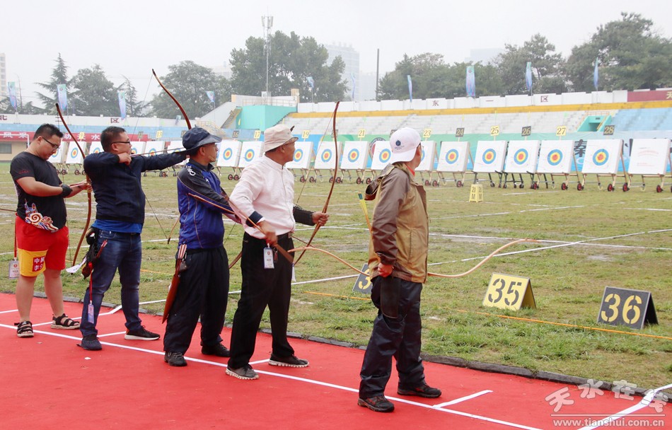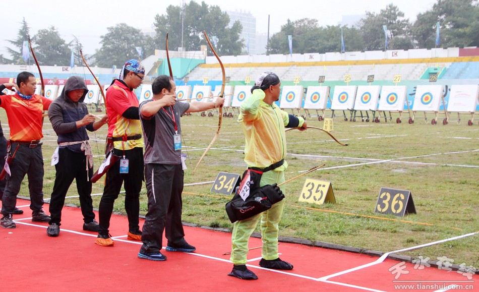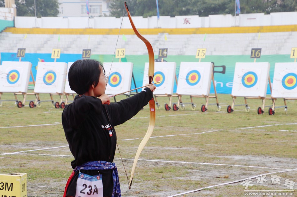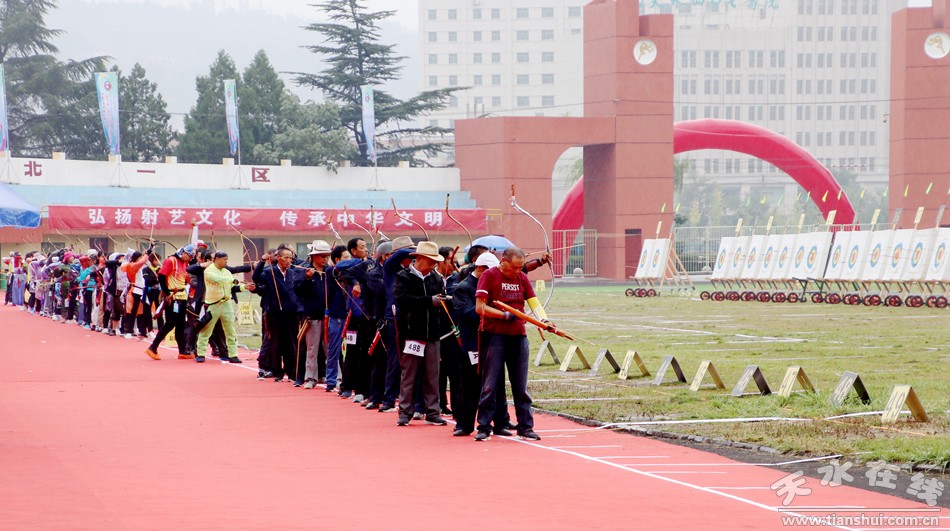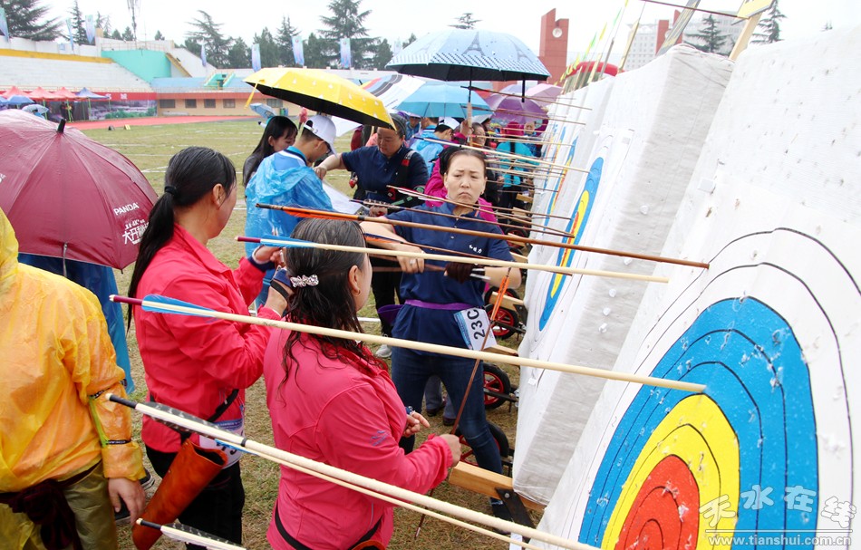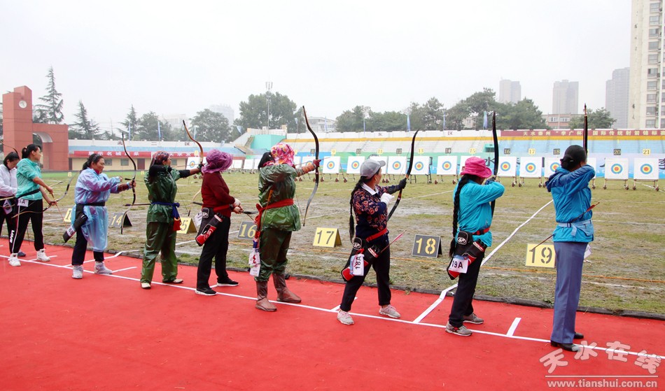 秦州區(qū)外宣辦9月13日訊(劉可 趙鋒 攝影:天水在線)第四屆“李廣杯”國(guó)際傳統(tǒng)射箭錦標(biāo)賽第二天的比賽是在雨中進(jìn)行的。不期而遇的雨天絲毫沒(méi)有影響選手們的參賽激情。成人組的選手們?cè)谟曛袕埞罴徽股渌嚒?