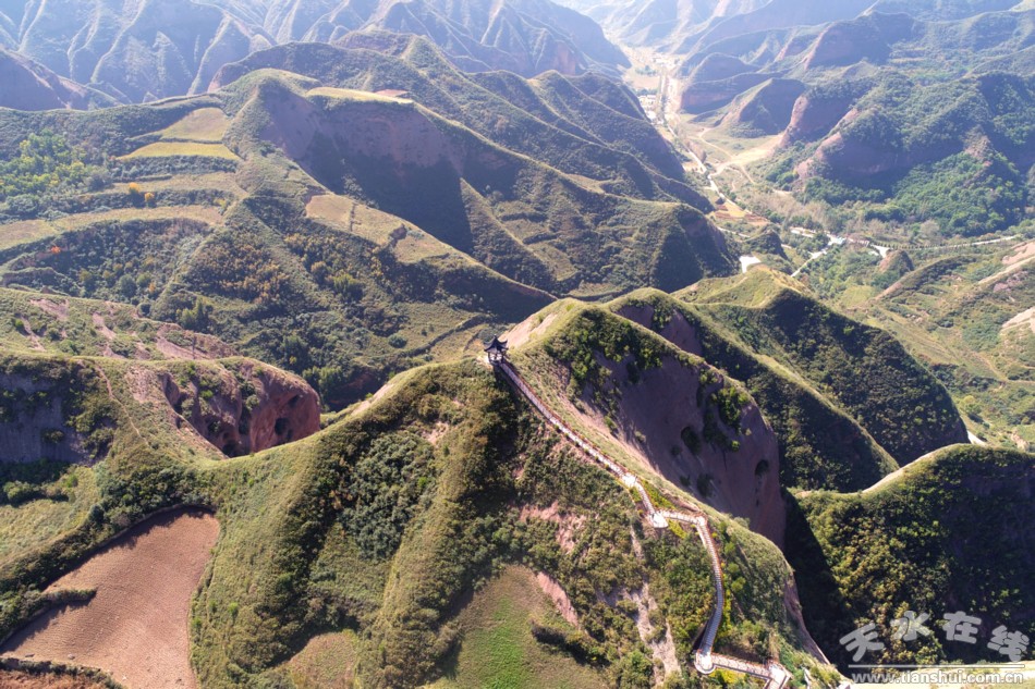 9月22日,天水在線無人機(jī)對位于武山縣榆盤鎮(zhèn)境內(nèi),被稱為古寧遠(yuǎn)八景之一的魯班山進(jìn)行航拍。