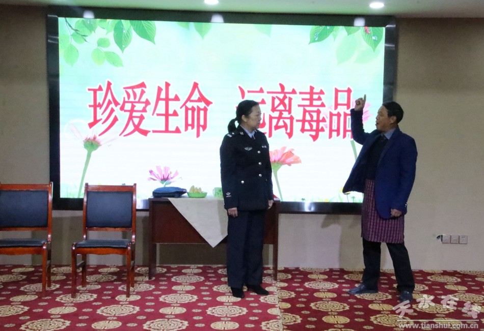 10月10日晚8點, 河南省小舍文化傳媒有限公司禁毒宣傳在天水市天麟金融大廈傾情演出。市委政法委副書記、市綜治辦主任、市禁毒委副主任陳璧田,市公安局副局長、市禁毒委副主任桐向東出席活動并致辭。秦州區(qū)、麥積區(qū)禁毒成員單位、社區(qū)負責同志及市禁毒委各成員單位相關負責同志及市禁毒辦和市公安局相關部門的全體同志共計300余人觀看演出。