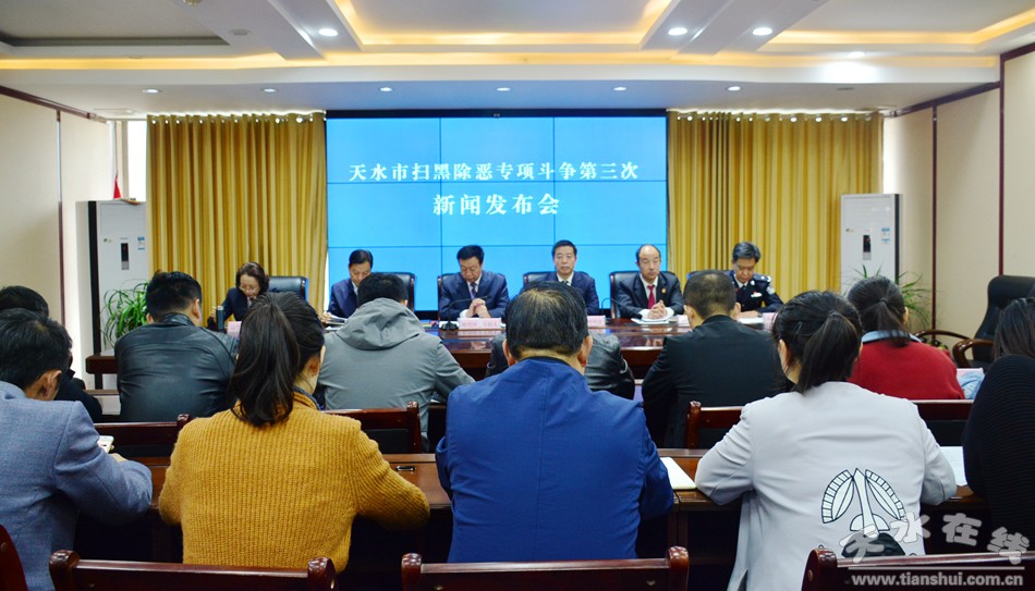 10月12日上午,天水市召開掃黑除惡專項(xiàng)斗爭第三次新聞發(fā)布會,面向全社會發(fā)布全市掃黑除惡專項(xiàng)斗爭進(jìn)展情況。