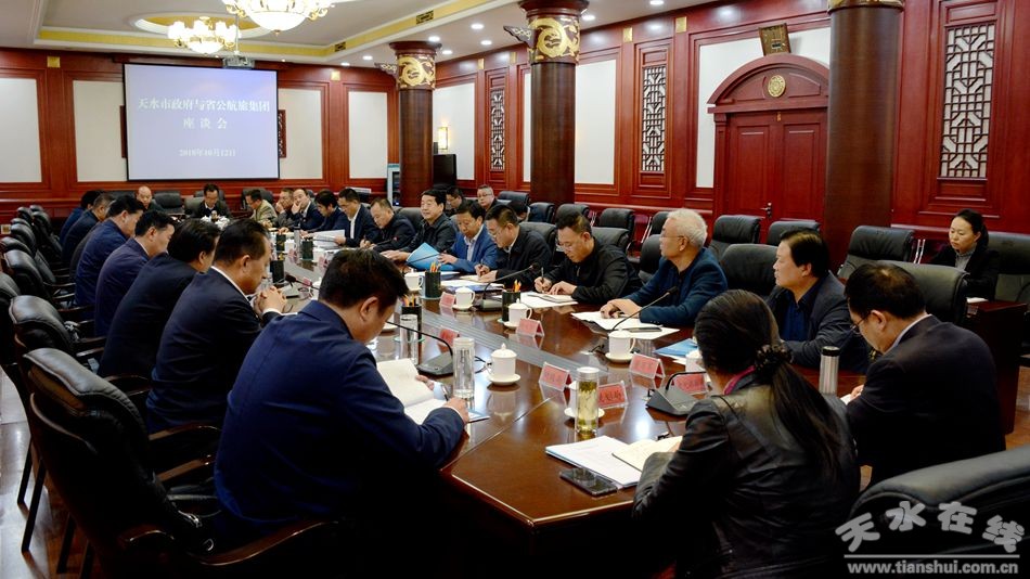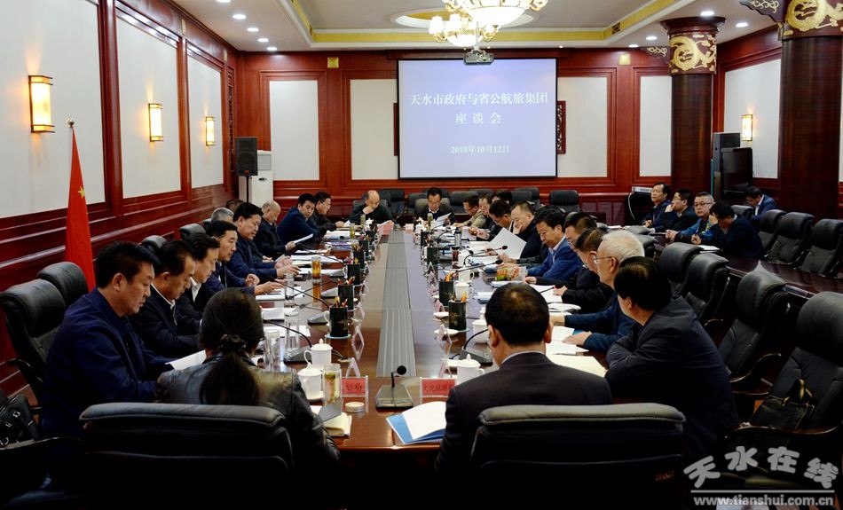 10月12日下午,天水市政府與甘肅省公路航空旅游投資集團(tuán)有限公司舉行座談會。雙方就加強(qiáng)央企與地方合作、加快推進(jìn)有關(guān)合作項(xiàng)目進(jìn)行了洽談交流。