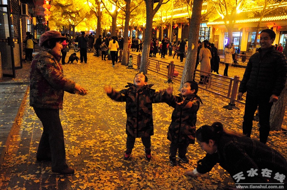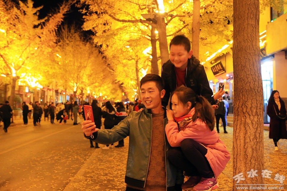 十多天來,在天水網(wǎng)紅街上,一樹樹葉子完成了它一生最華美的蛻變,而在這條由銀杏落葉鋪就的“黃金大道”上,成千上萬的人們,每天也都上演著一幕幕動人的故事。