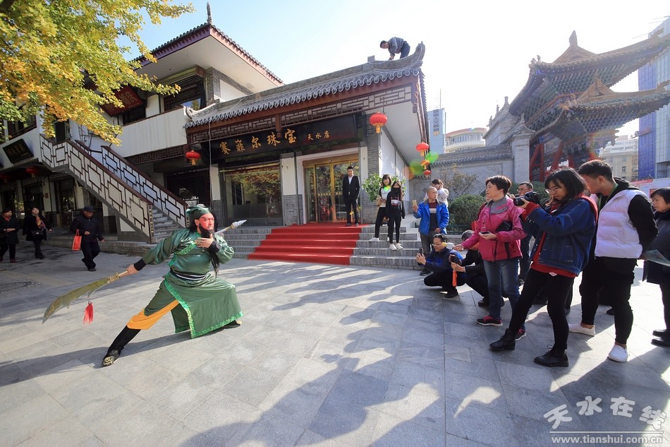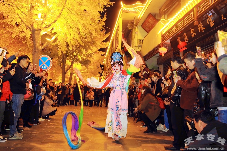 (中國戲劇梅花獎得主、中國秦腔四小名旦、天水市秦劇團(tuán)副團(tuán)長袁丫丫亮相天水“黃金大道”。)