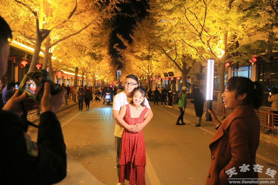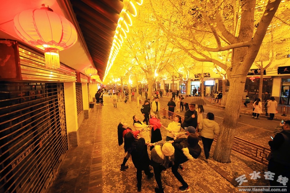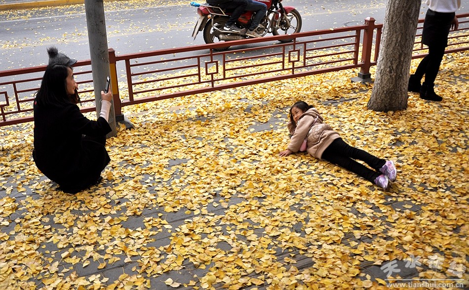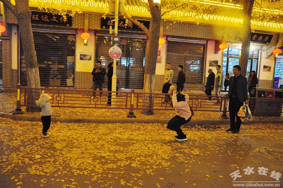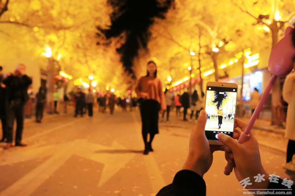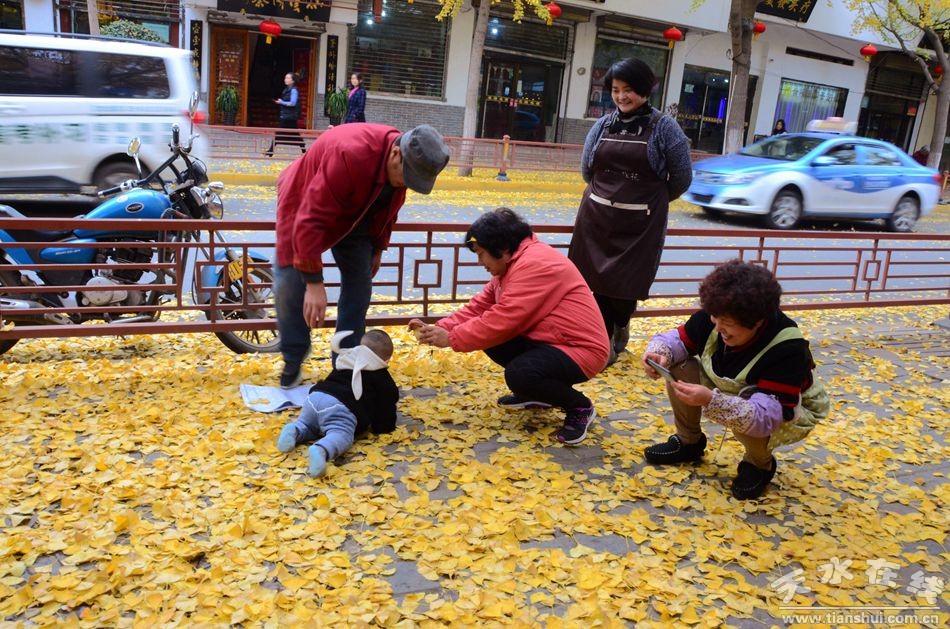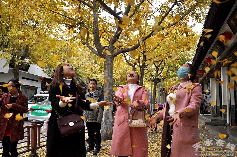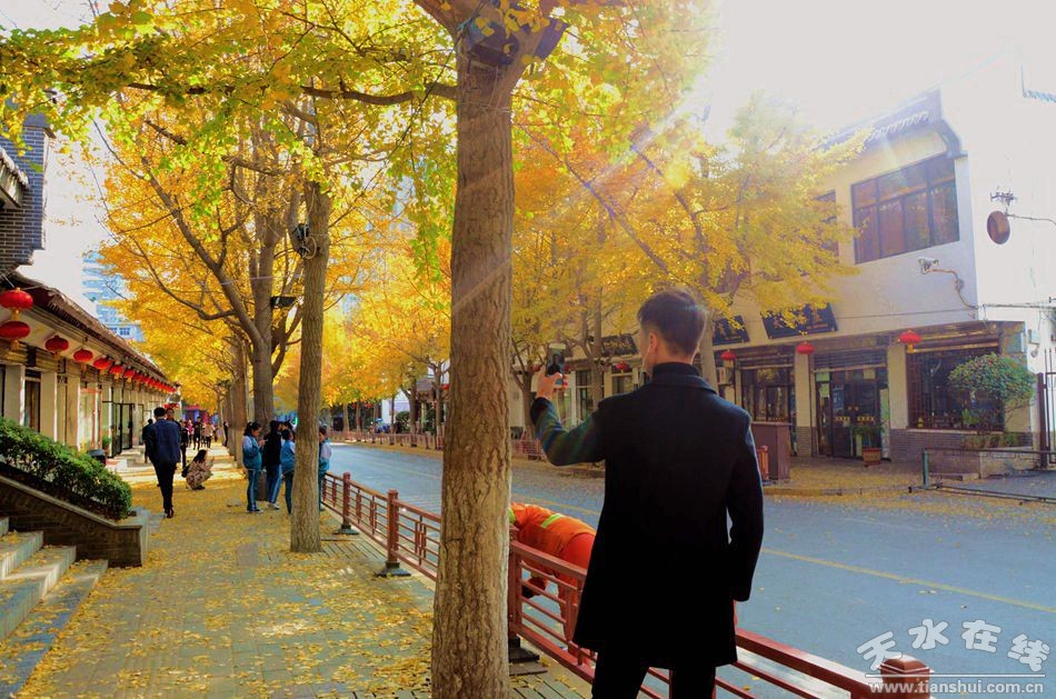 十多天來,在天水網(wǎng)紅街上,一樹樹葉子完成了它一生最華美的蛻變,而在這條由銀杏落葉鋪就的“黃金大道”上,成千上萬的人們,每天也都上演著一幕幕動人的故事。