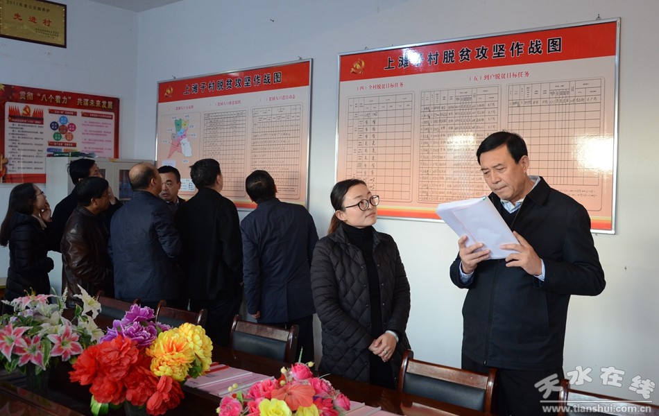 趙衛(wèi)東一行先后來到武山縣馬力鎮(zhèn)王溝村、遠中村,甘谷縣八里灣鎮(zhèn)徐家岔村,金山鎮(zhèn)上灘子村等地,通過聽取驗收組成員、第一書記、駐村干部情況匯報、查看脫貧驗收資料、隨機入戶走訪等方式,詳細了解了貧困退出抽查驗收工作情況,并就貧困村產(chǎn)業(yè)發(fā)展、鄉(xiāng)村衛(wèi)生室建設、危房改造、村容村貌整治、農(nóng)村安全飲水工程、道路、醫(yī)療、教育、扶志強智等方面存在的困難和問題提出了意見和建議。