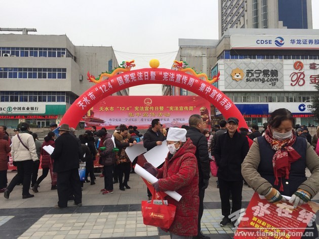 今年12月4 日是第五個國家憲法日,也將是第一個“憲法宣傳周”。為深入貫徹落實(shí)中央、省、市關(guān)于深入學(xué)習(xí)宣傳和貫徹實(shí)施憲法的部署,增強(qiáng)全民法治觀念,推動全社會樹立憲法意識。12月4日,天水市司法局、秦州區(qū)司法局組織市區(qū)40家政法機(jī)關(guān)和行政執(zhí)法單位,在龍城廣場開展了以“尊崇憲法、學(xué)習(xí)憲法、遵守憲法、維護(hù)憲法、運(yùn)用憲法”為主題的國家憲法日暨“憲法宣傳周”集中宣傳活動。天水市人大常委會黨組成員、副主任王曉琴、秦州區(qū)委常委、政法委書記劉小平,市司法局負(fù)責(zé)人親臨現(xiàn)場查看活動開展情況。