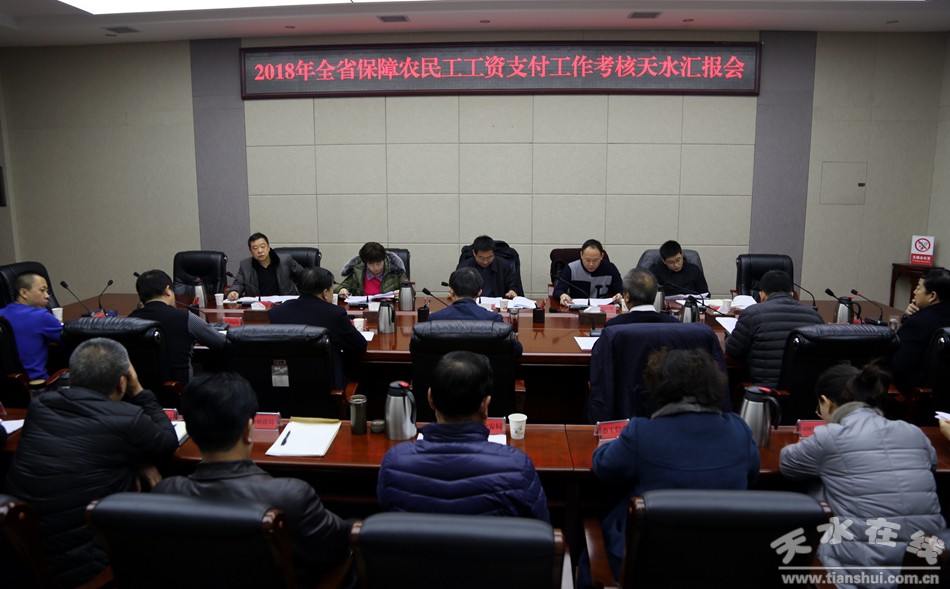 12月20日,省水利廳副巡視員翟自宏帶領(lǐng)省第二考核組來天水市,就我市2018年保障農(nóng)民工工資支付工作進(jìn)行考核。市委常委、副市長(zhǎng)劉驍出席匯報(bào)會(huì)。