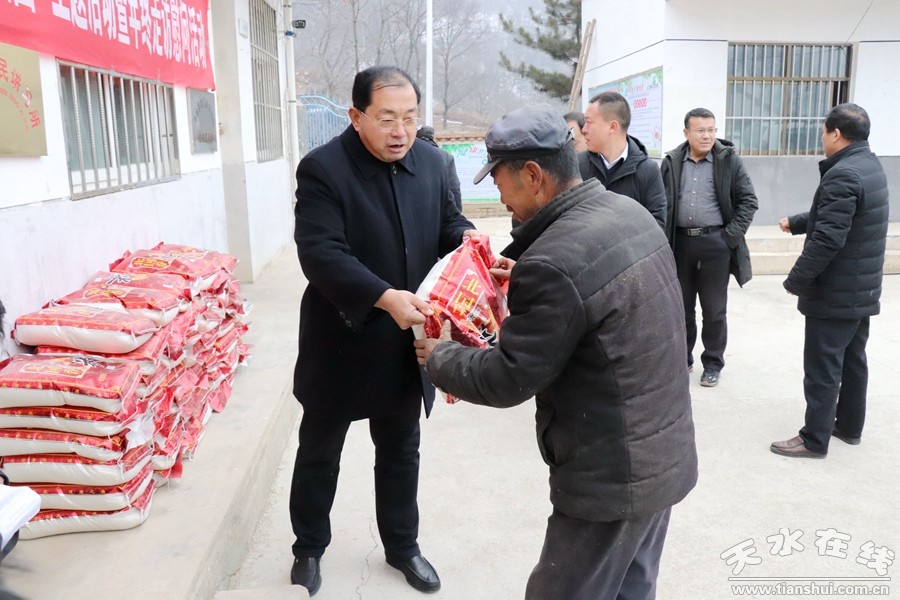 1月9日,天水國(guó)家農(nóng)業(yè)科技園區(qū)管委會(huì)領(lǐng)導(dǎo)班子帶領(lǐng)全體幫扶責(zé)任人深入山門(mén)鎮(zhèn)吊山村開(kāi)展年終走訪慰問(wèn)活動(dòng)。共為吊山村每戶(hù)發(fā)放大米1袋、食用油1桶,價(jià)值共計(jì)6000多元。