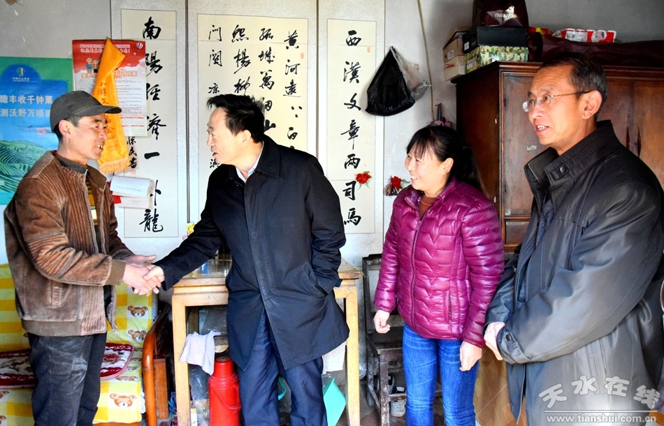 1月25日,天水市人大常委會副主任宋建平帶領(lǐng)相關(guān)負責(zé)人,冒著嚴寒來到麥積區(qū)琥珀鎮(zhèn)幫扶聯(lián)系點高方村和西山村貧困戶家中,開展春節(jié)前走訪慰問活動,為貧困戶送去慰問品,并向他們致以春節(jié)前的問候和祝福。