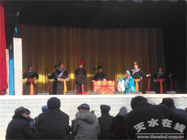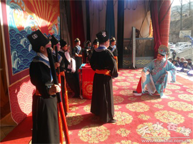 2月12日,天水市西秦腔研究院春臺送戲下鄉(xiāng)演出活動在秦安縣葉堡鎮(zhèn)青龍寺鳴鑼開戲,進(jìn)行了春臺首場演出。