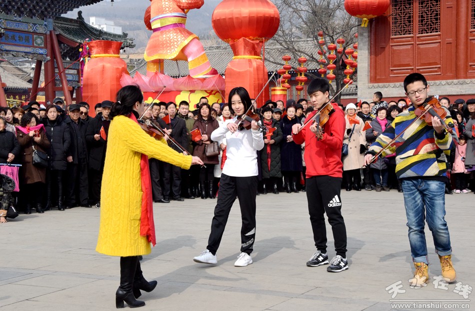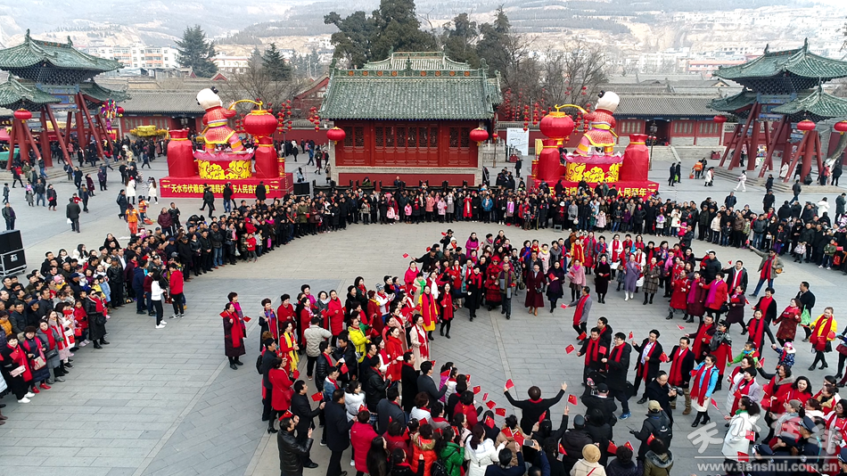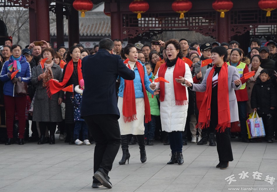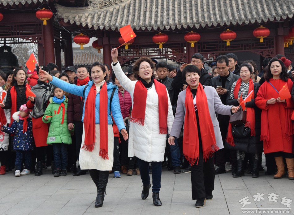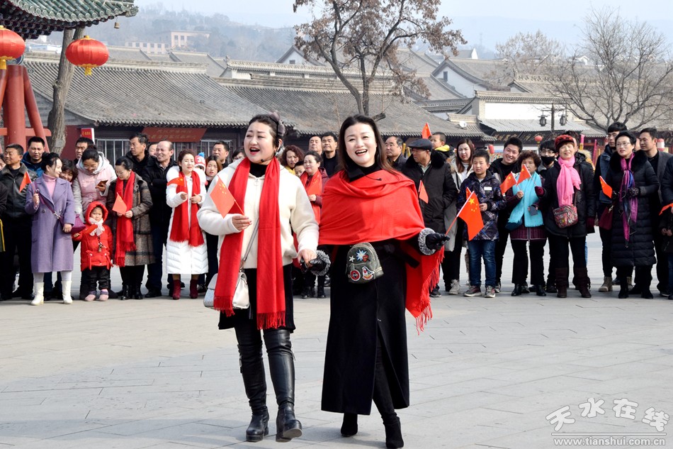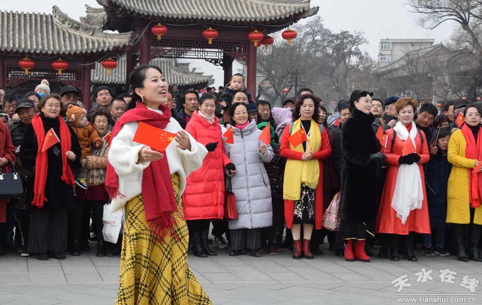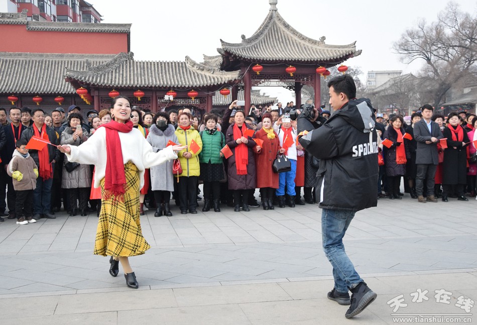 2月19日,農(nóng)歷正月十五,天水伏羲廣場上演“我和我的祖國”快閃,參加演出的專業(yè)人士多達(dá)上百人,上千群眾觀看并參與了“快閃”演出。