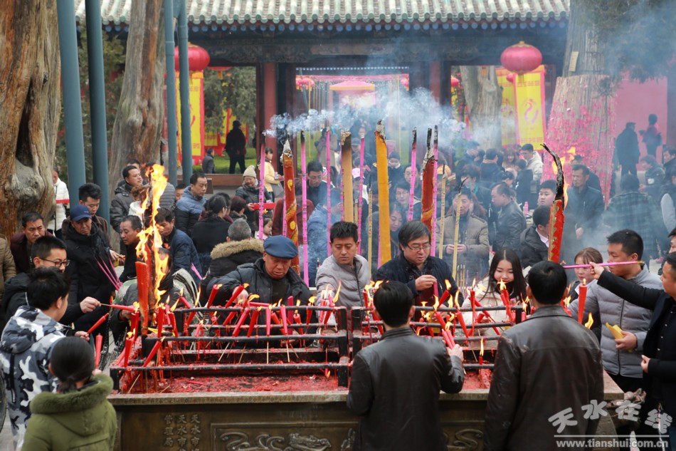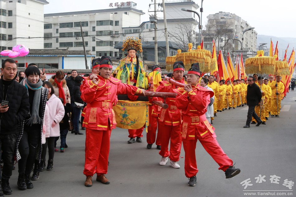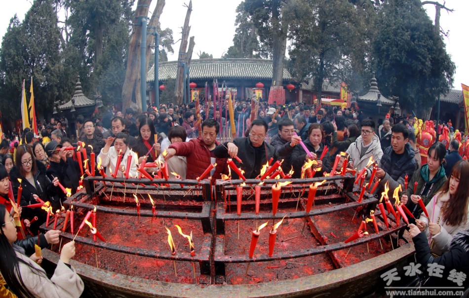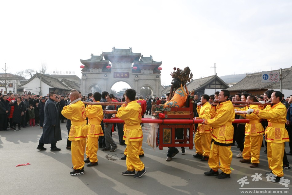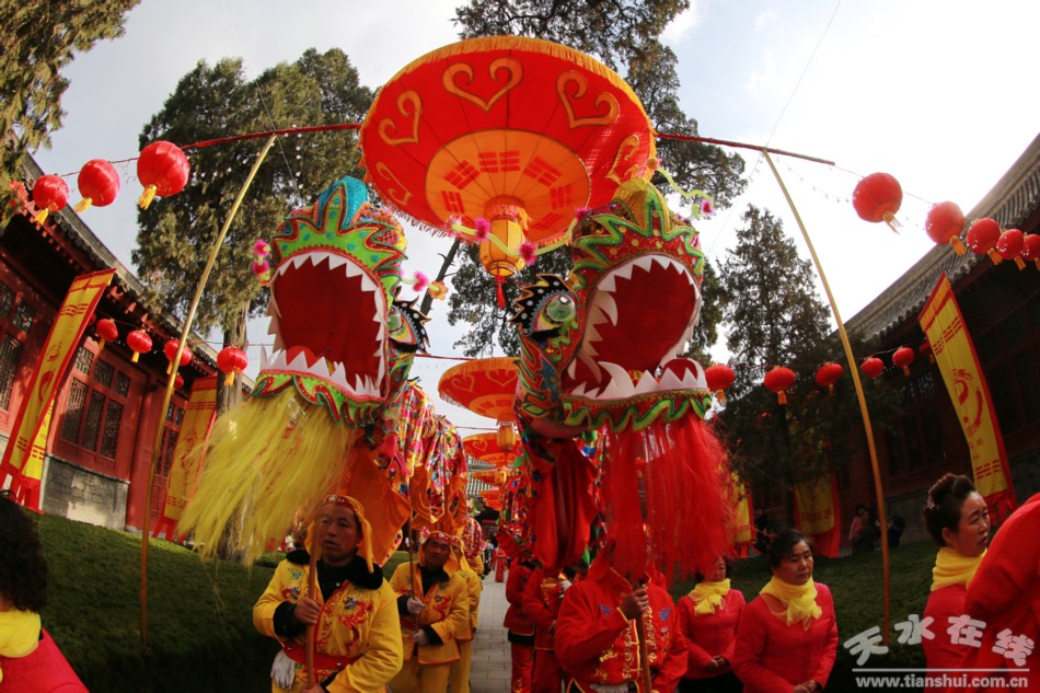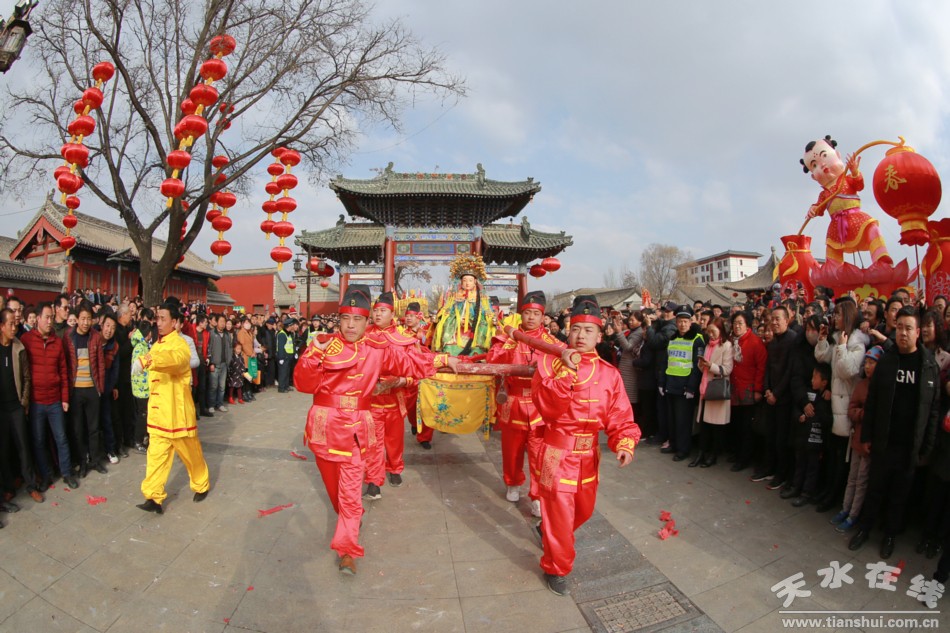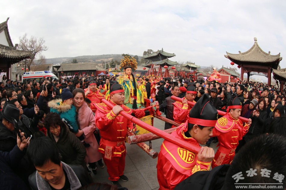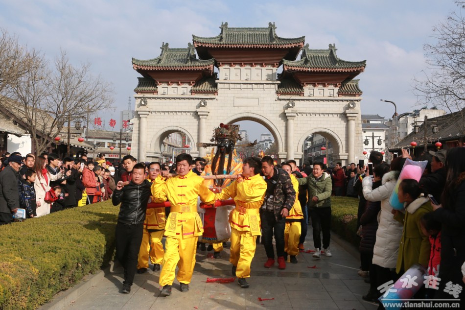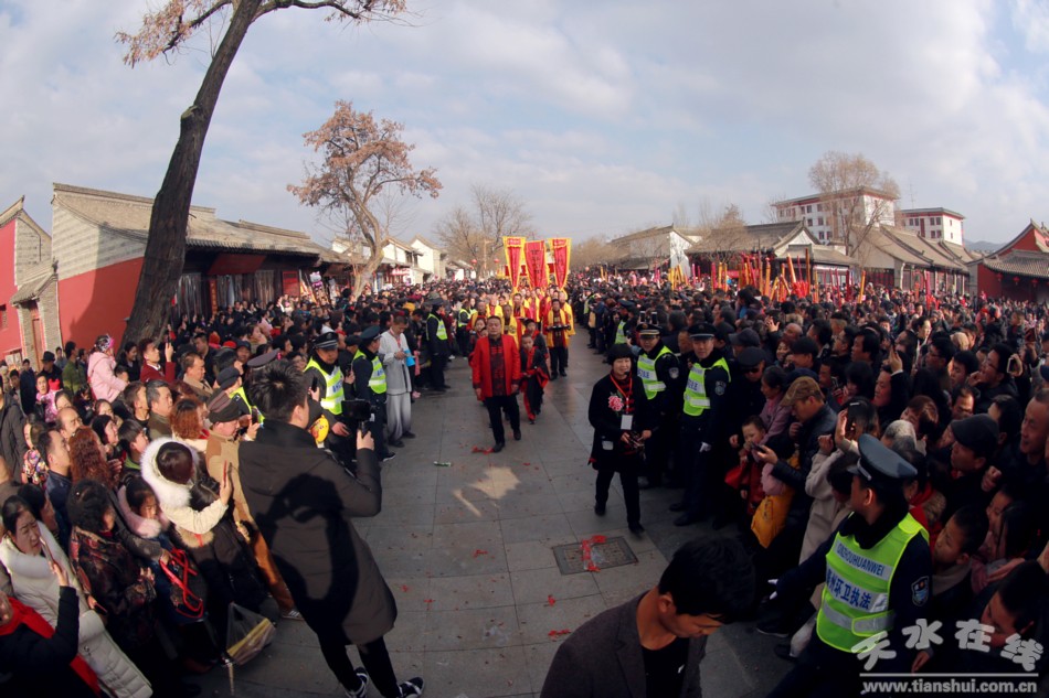 2月19日(農(nóng)歷正月十五)下午,在春祭伏羲典禮即將于明日零時(shí)舉行之際,天水伏羲廟己亥(2019)年春祭伏羲活動(dòng)之迎獻(xiàn)飯儀式在先天殿月臺(tái)舉行。迎獻(xiàn)飯儀仗隊(duì)伍約1000多人一路走來,聲勢浩大,鼓樂喧天,參加廟會(huì)的近10萬名群眾觀看了儀式。