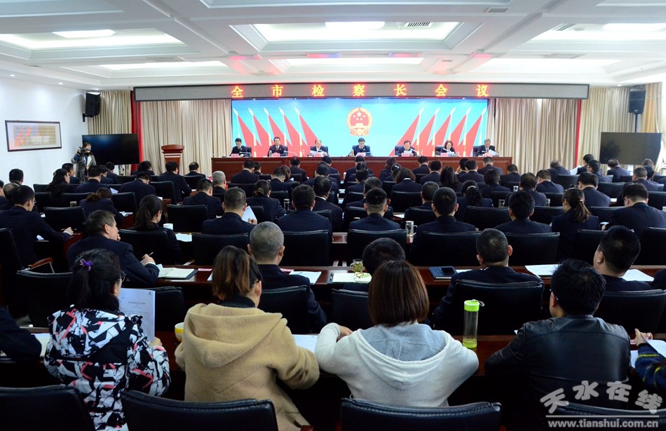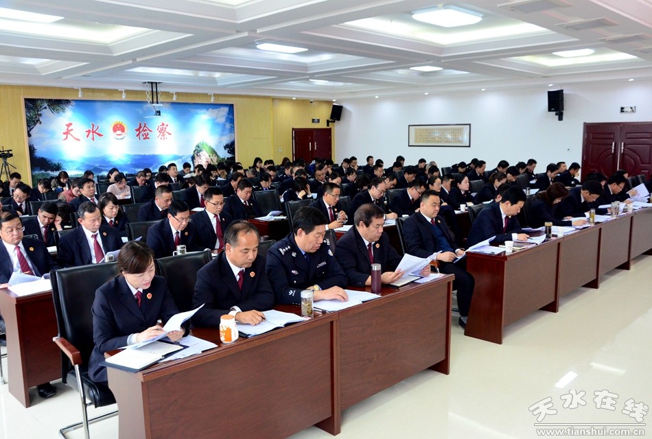 2月26日,天水市人民檢察院組織召開全市檢察長(zhǎng)會(huì)議。會(huì)議傳達(dá)學(xué)習(xí)了中央、省委、市委政法工作會(huì)議和全國(guó)、全省檢察長(zhǎng)會(huì)議精神,總結(jié)了2018年全市檢察工作,部署了2019年主要工作任務(wù),表彰了2018年度先進(jìn)基層檢察院和基層院各條線先進(jìn)集體,通報(bào)了2018年度各條線檢察工作具體目標(biāo)完成情況、各條線及六項(xiàng)重點(diǎn)工作后進(jìn)基層院和各基層院檢察工作考核情況。市檢察院黨組成員、各縣(區(qū))院檢察長(zhǎng)和相關(guān)部門負(fù)責(zé)人、市檢察院全體干警參加了會(huì)議。