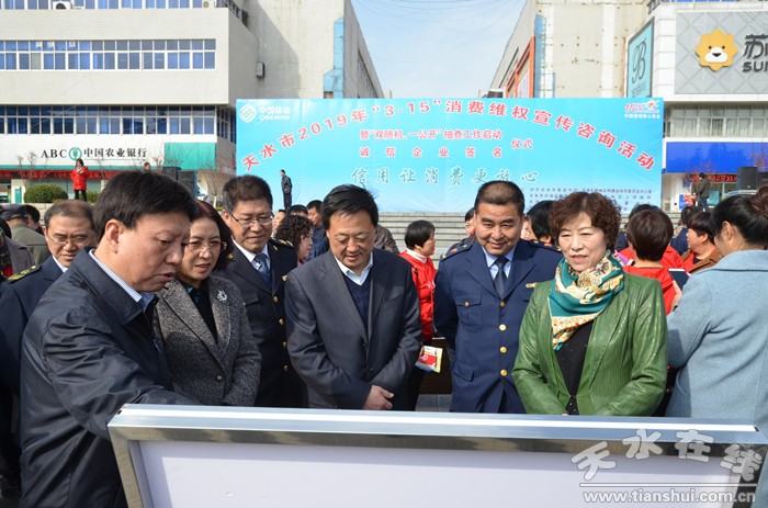 3月15日,天水市2019年“3·15”消費(fèi)維權(quán)宣傳咨詢活動暨“雙隨機(jī)、一公開”抽查工作啟動儀式在龍城廣場舉行。今年“3·15”消費(fèi)維權(quán)活動的主題是“信用讓消費(fèi)更放心”。