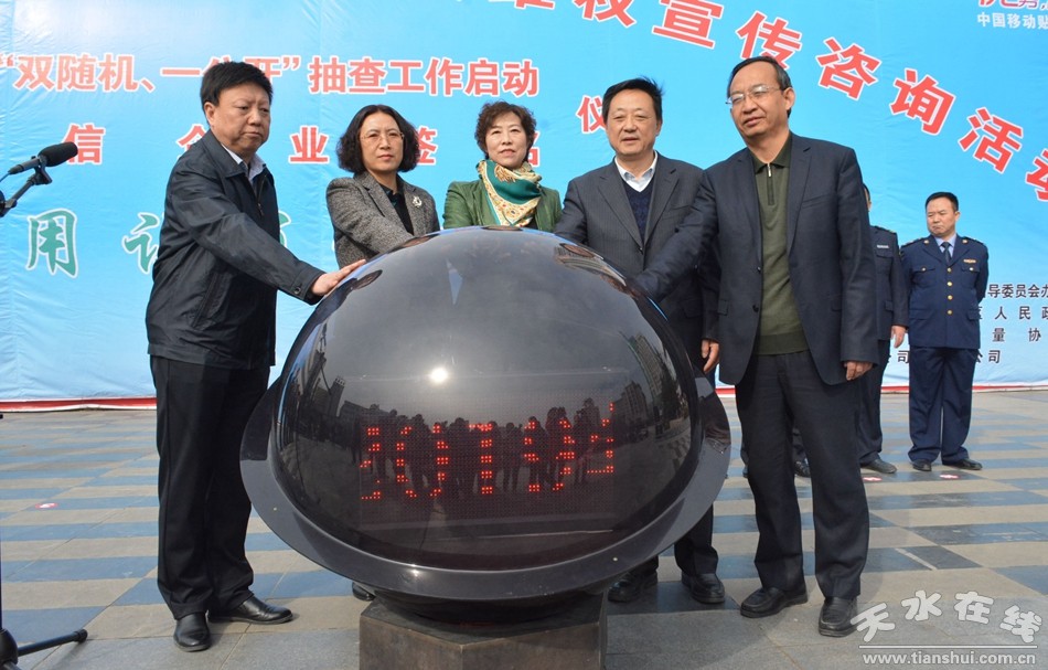 市委常委、統(tǒng)戰(zhàn)部部長溫利平宣布天水市部門聯(lián)合“雙隨機(jī)、一公開”抽查活動啟動;市人大常委會副主任宋建平,副市長王燕,市政協(xié)副主席王振宇出席啟動儀式。市委宣傳部、市文明辦、市市場監(jiān)管局等部門負(fù)責(zé)人,秦州區(qū)政府分管領(lǐng)導(dǎo),市消費(fèi)者協(xié)會各常務(wù)理事單位和理事單位負(fù)責(zé)人,市、區(qū)市場監(jiān)管局干部職工以及部分企業(yè)、個體工商經(jīng)營者代表和3·15志愿者共800多人參加活動。