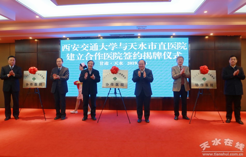 。3月16日,西安交通大學與天水市第一人民醫(yī)院、天水市中西醫(yī)結合醫(yī)院(市二院)、天水市中醫(yī)醫(yī)院在天水賓館舉行協(xié)作醫(yī)院簽約揭牌儀式。)