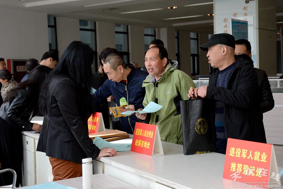 此次招聘會(huì)是天水市退役軍人事務(wù)局組建以來,針對(duì)退役軍人和現(xiàn)役軍人家屬舉辦的第一次專場招聘會(huì)。在招聘會(huì)前期,市退役軍人事務(wù)局和相關(guān)部門,在市內(nèi)各大媒體進(jìn)行了廣泛深入的宣傳動(dòng)員,對(duì)退役軍人求職人數(shù)和求職意向進(jìn)行了摸底統(tǒng)計(jì),并積極協(xié)調(diào)駐市部隊(duì)組織現(xiàn)役軍人家屬參會(huì)。招聘期間,設(shè)立了政策法規(guī)咨詢處和退役軍人就業(yè)登記推薦處,共發(fā)放《退役軍人就業(yè)創(chuàng)業(yè)有關(guān)政策規(guī)定》600余份,提供勞動(dòng)就業(yè)、創(chuàng)業(yè)扶持等相關(guān)法律法規(guī)現(xiàn)場咨詢840人次,采集登記求職人數(shù)687人,為退役軍人和現(xiàn)役軍人家屬建立了就業(yè)信息臺(tái)賬,在就業(yè)創(chuàng)業(yè)方面將提供個(gè)性化、精細(xì)化的跟蹤服務(wù)。