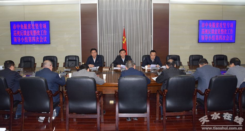 4月4日,天水市中央脫貧攻堅(jiān)專(zhuān)項(xiàng)巡視反饋意見(jiàn)整改工作領(lǐng)導(dǎo)小組第四次會(huì)議召開(kāi)。市委副書(shū)記趙衛(wèi)東在會(huì)上強(qiáng)調(diào),要深入學(xué)習(xí)貫徹習(xí)近平總書(shū)記關(guān)于扶貧工作的重要論述和參加十三屆全國(guó)人大二次會(huì)議甘肅代表團(tuán)審議時(shí)的重要講話精神, 切實(shí)把思想和行動(dòng)統(tǒng)一到黨中央和省、市委的決策部署上來(lái),堅(jiān)決全面徹底完成各項(xiàng)整改任務(wù),確保打贏脫貧攻堅(jiān)這場(chǎng)硬仗。