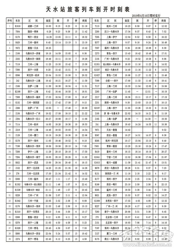 特點(diǎn)三、對(duì)途經(jīng)天水車(chē)站的部分旅客列車(chē)運(yùn)行時(shí)分進(jìn)行了調(diào)整