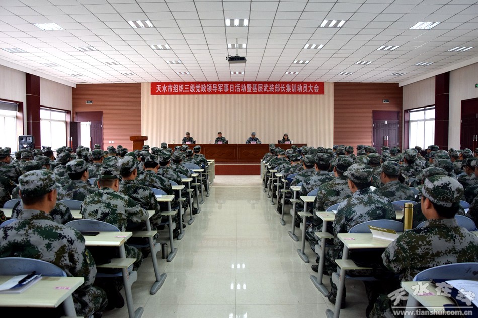 4月9日,天水市組織三級黨政領(lǐng)導(dǎo)軍事日活動暨基層武裝部長集訓(xùn)和資格認證考核動員大會。這次集訓(xùn)和軍事日活動,既是一次統(tǒng)一思想、凝聚共識、強化責任的動員教育,也是一次學(xué)習(xí)業(yè)務(wù)、提高專武干部能力素質(zhì)、理清思路的輔導(dǎo)集訓(xùn),更是一次加強基層武裝建設(shè)、加強黨管武裝、履行主責主業(yè)、打牢基層基礎(chǔ)的任務(wù)部署。