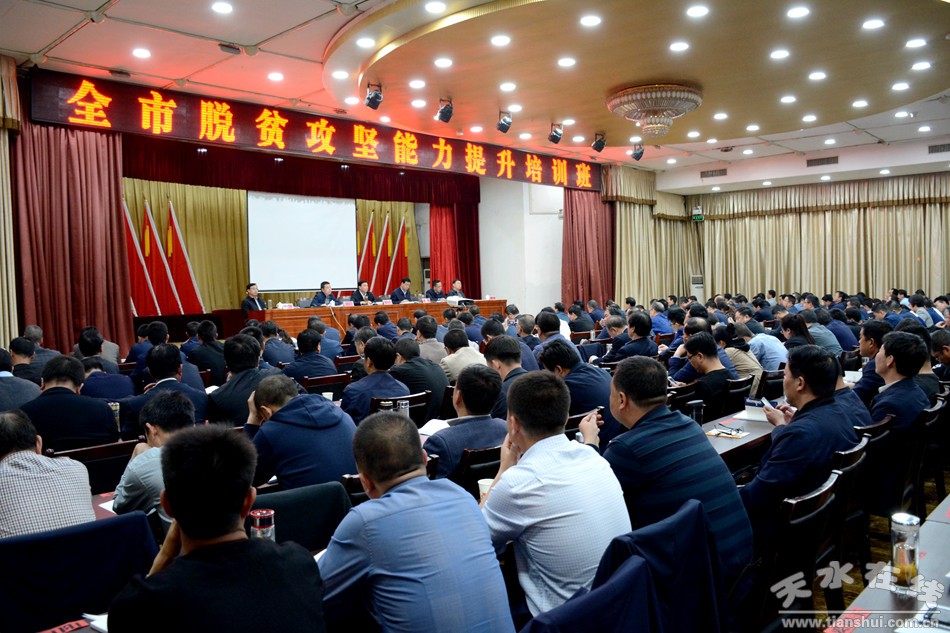 4月10日,全市脫貧攻堅(jiān)能力培訓(xùn)班在天水迎賓館開班。本次培訓(xùn)班是在全市進(jìn)入脫貧摘帽的關(guān)鍵時(shí)期,市脫貧攻堅(jiān)領(lǐng)導(dǎo)小組對(duì)市縣區(qū)攻堅(jiān)專責(zé)組單位負(fù)責(zé)人和各鄉(xiāng)鎮(zhèn)主要領(lǐng)導(dǎo)進(jìn)行一次能力提升培訓(xùn)。培訓(xùn)班邀請(qǐng)省扶貧辦和我市12個(gè)專責(zé)組相關(guān)負(fù)責(zé)人對(duì)脫貧攻堅(jiān)相關(guān)政策和業(yè)務(wù)知識(shí)進(jìn)行兩天半的全面培訓(xùn)。