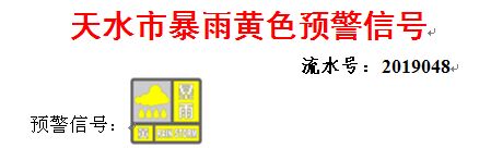 天水市氣象臺(tái)2019年4月20日04時(shí)40分發(fā)布暴雨黃色預(yù)警信號(hào):