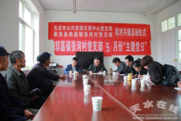 5月15日,天水市公共資源交易中心黨組成員、副主任、黨支部書記裴根福同志與支部成員和中心部分黨員一行赴秦安縣郭嘉鎮(zhèn)張河村與該村黨支部開(kāi)展結(jié)對(duì)共建活動(dòng)。