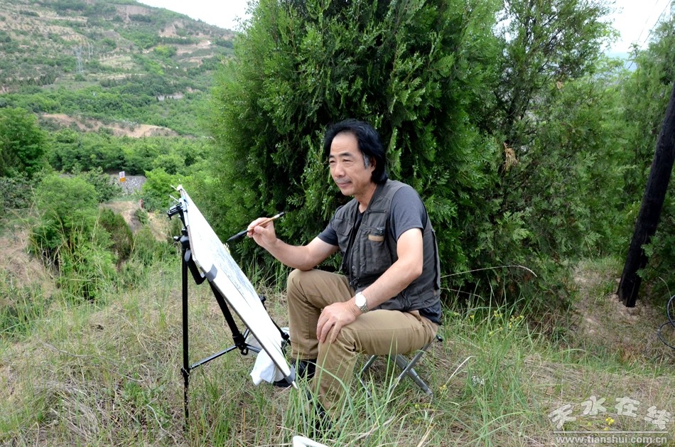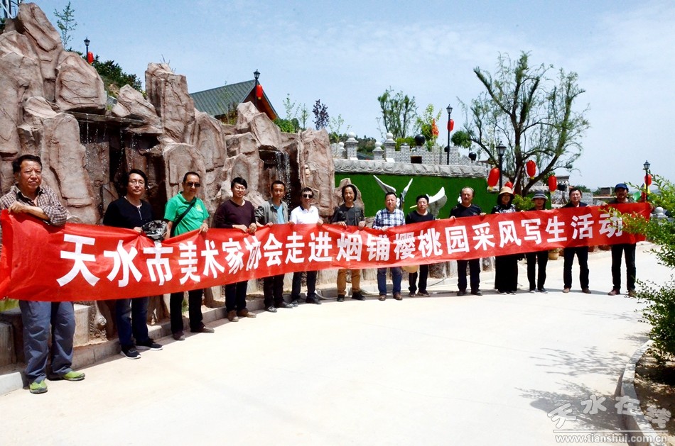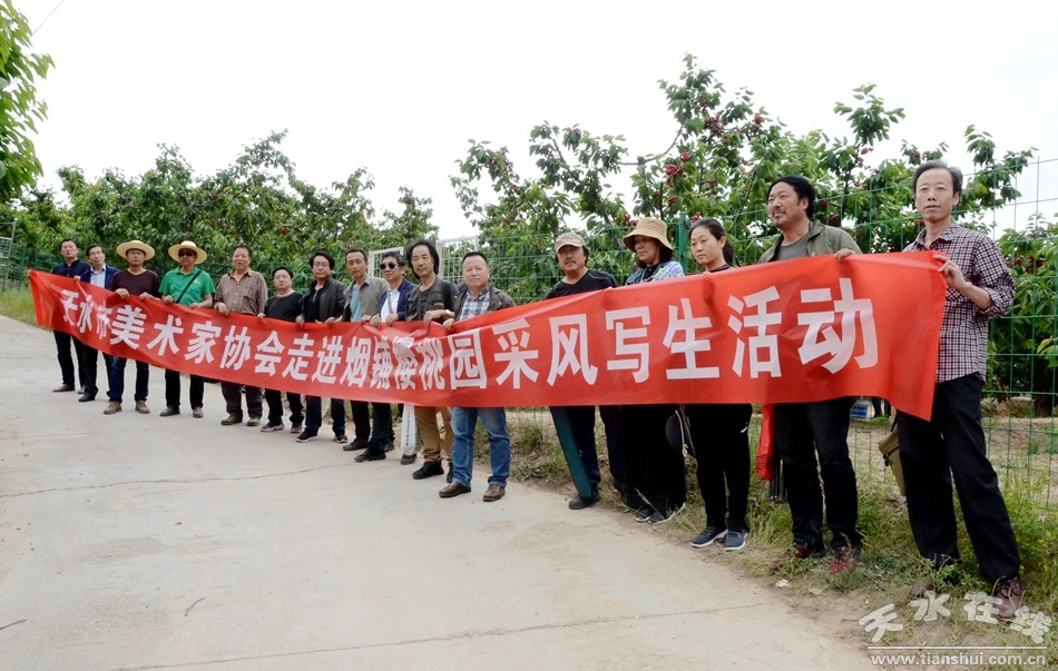 天水在線5月26日攝影報(bào)道 為了宣傳煙鋪大櫻桃,應(yīng)天水在線和煙鋪農(nóng)莊邀請,天水市美術(shù)家協(xié)會主席賈利珠帶領(lǐng)協(xié)會14名成員,5月26日,走進(jìn)煙鋪櫻桃園采風(fēng)。