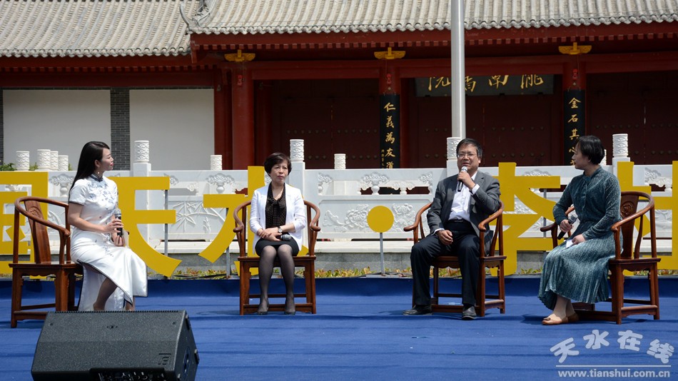 開幕式上,甘肅省作協(xié)主席馬步升介紹了天水實力作家改稿會情況;津京天水籍作家、藝術(shù)家向“中國天水·李杜詩歌節(jié)”組委會贈送了書畫作品。著名國學(xué)大師、西北師大資深教授趙逵夫,《小說選刊》副主編李曉東以及天水一中校長李強、天水市逸夫?qū)嶒炛袑W(xué)校長沈建玲、天水市實驗小學(xué)校長王增梅等嘉賓還分別圍繞古漢水與“天水”之名的來由,天水與李白、杜甫的情緣,詩歌、詩教與中小學(xué)人文教育等話題,進(jìn)行了精彩暢談。