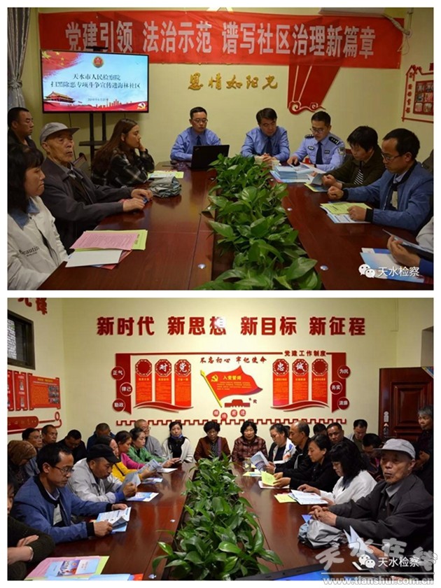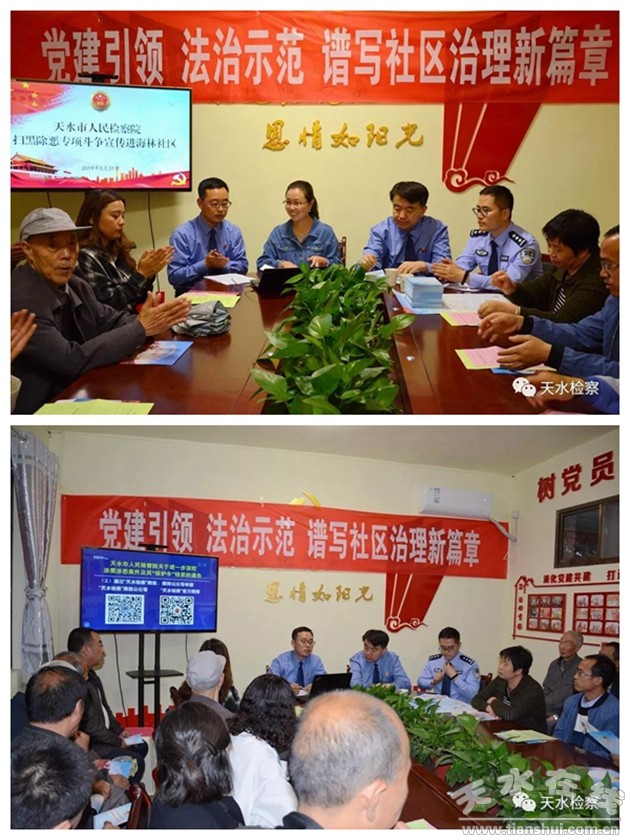 為深入開展掃黑除惡專項(xiàng)斗爭(zhēng)宣傳“八進(jìn)”活動(dòng),切實(shí)提高廣大群眾對(duì)掃黑除惡專項(xiàng)斗爭(zhēng)的參與度,5月31日,天水市人民檢察院應(yīng)邀深入秦州區(qū)七里墩街道辦事處海林社區(qū)開展掃黑除惡專項(xiàng)斗爭(zhēng)宣傳講座。