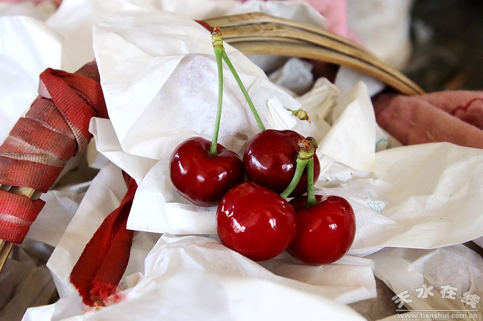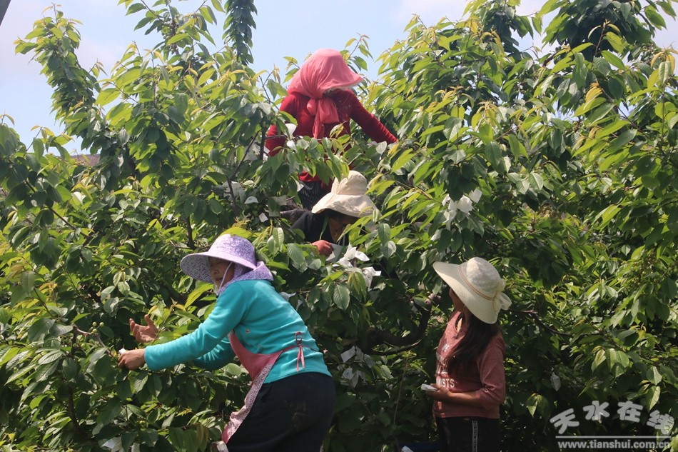 (套袋櫻桃上市啦 天水在線6月5日攝)