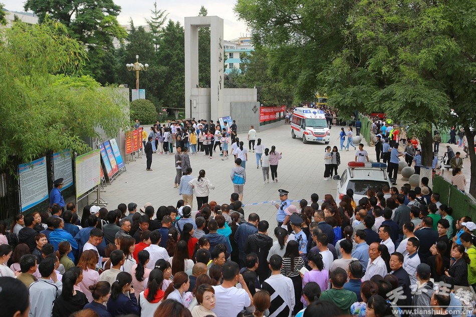 (天水一中考點(diǎn)外的家長)