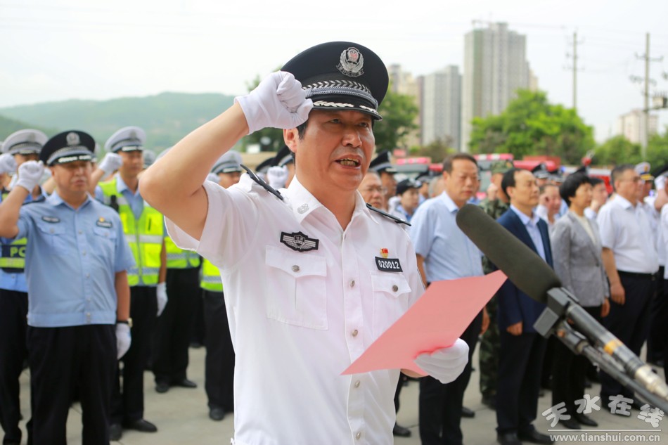 市公安局和秦州分局黨委班子成員、機(jī)關(guān)全體民警以及交警、特警、警犬、消防安保方隊(duì),在主會(huì)場(chǎng)參加誓師大會(huì)。麥積區(qū)和五縣相關(guān)領(lǐng)導(dǎo)及安保人員,分別在分會(huì)場(chǎng)參加誓師大會(huì)。市公安局和秦州分局黨委班子成員、機(jī)關(guān)全體民警以及交警、特警、警犬、消防安保方隊(duì),在主會(huì)場(chǎng)參加誓師大會(huì)。麥積區(qū)和五縣相關(guān)領(lǐng)導(dǎo)及安保人員,分別在分會(huì)場(chǎng)參加誓師大會(huì)。