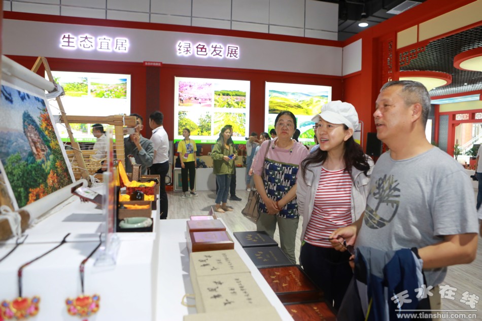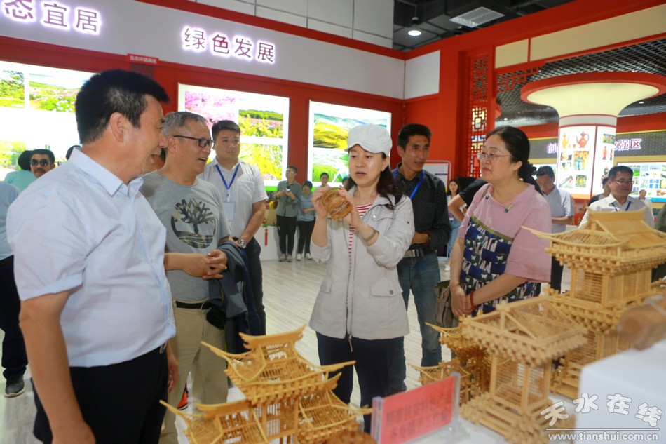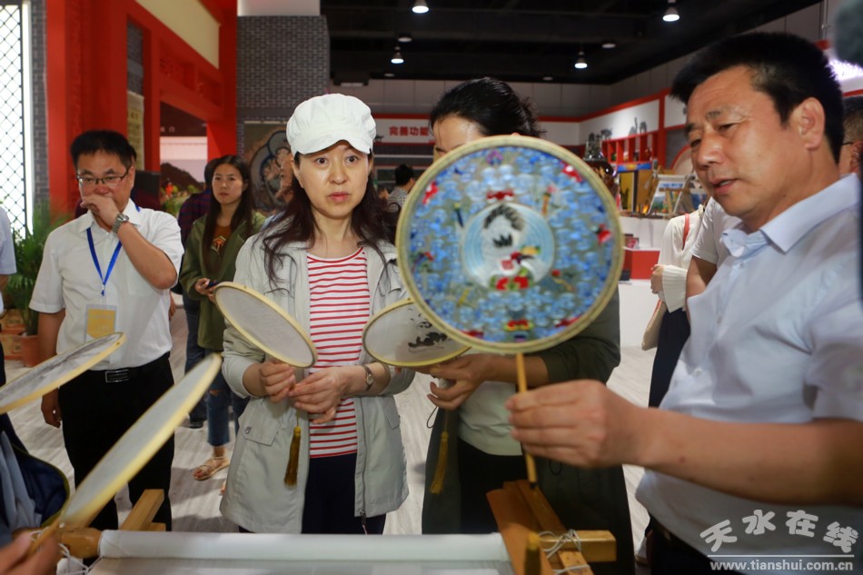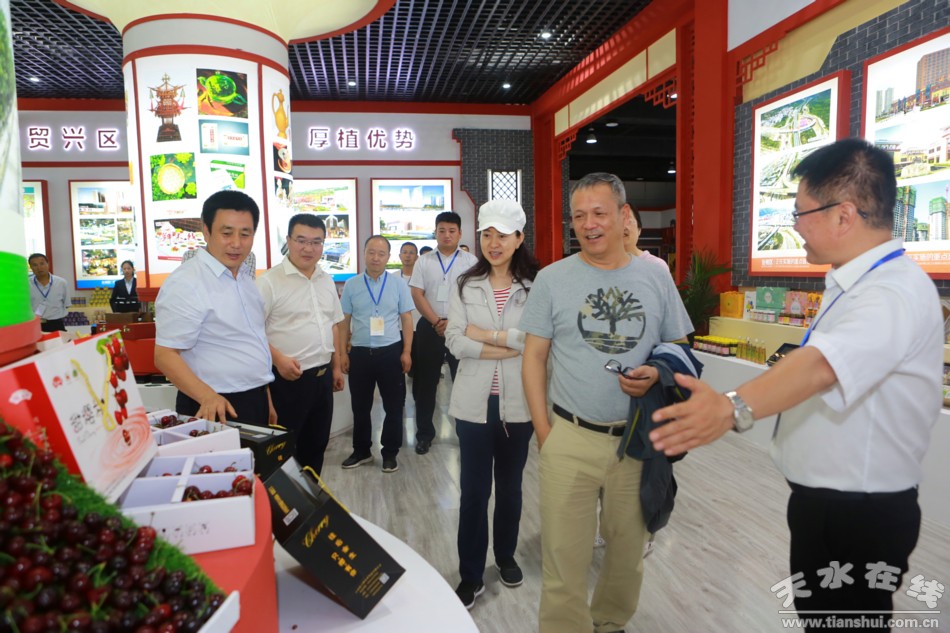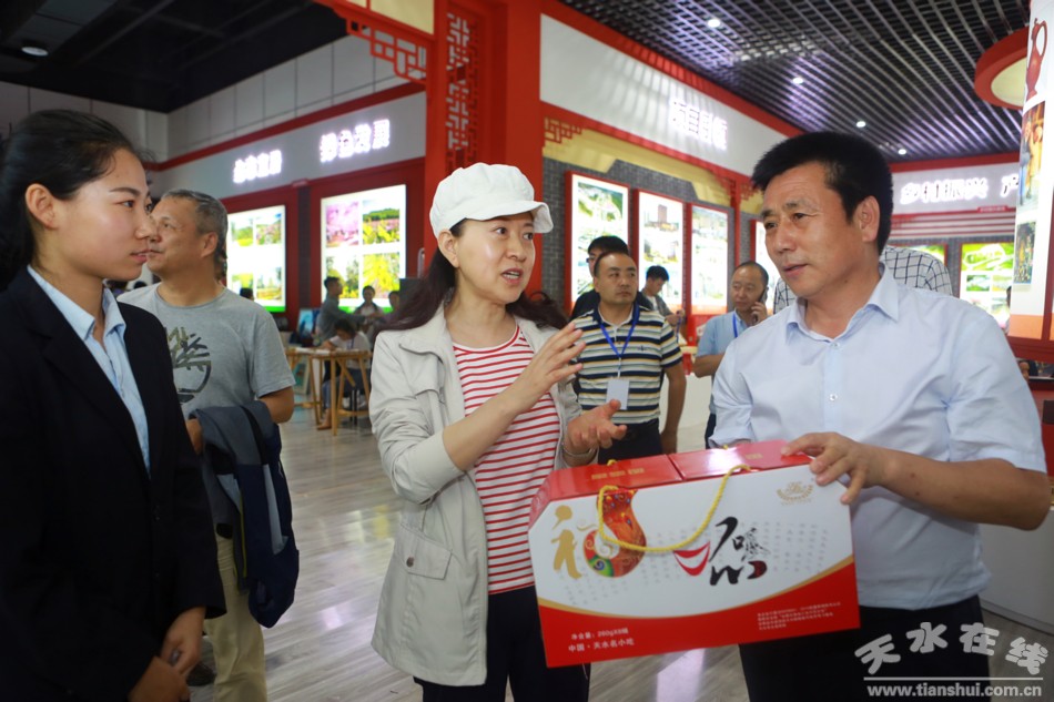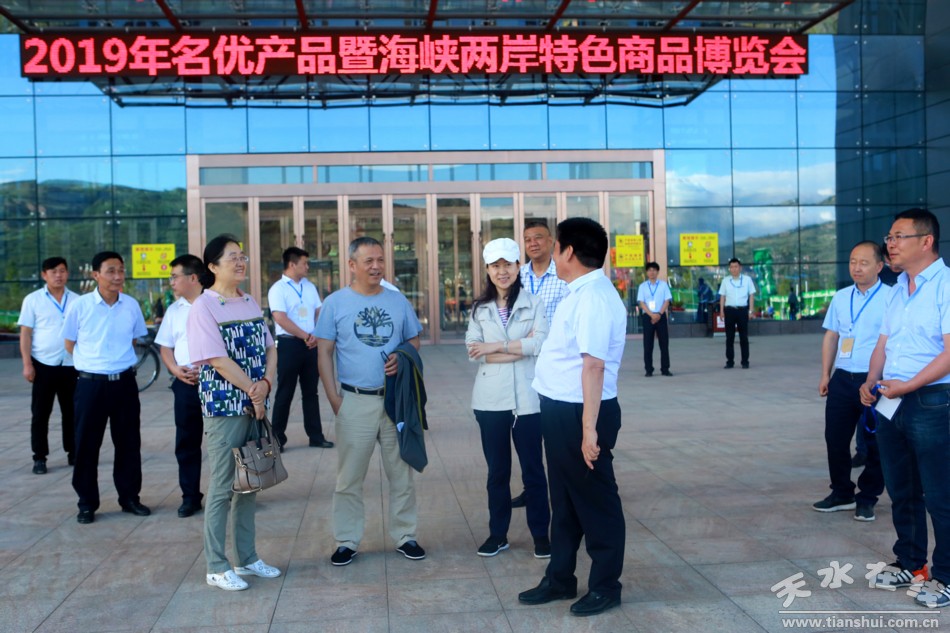 天水在線6月20日攝影報(bào)道 在2019(己亥)年公祭中華人文始祖伏羲大典暨第30屆天水伏羲文化旅游節(jié)即將開幕之際,6月20日上午,中國社會(huì)科學(xué)院歷史研究所研究員樓勁,天水籍知名人士、中央電視臺(tái)《中華情》總導(dǎo)演、秦州大櫻桃公益代言人郭霽紅女士應(yīng)邀來到位于天水市會(huì)展中心的2019年名優(yōu)產(chǎn)品暨海峽兩岸特色商品博覽會(huì)秦州館參觀。秦州區(qū)委副書記、區(qū)長劉文璽陪同參觀。