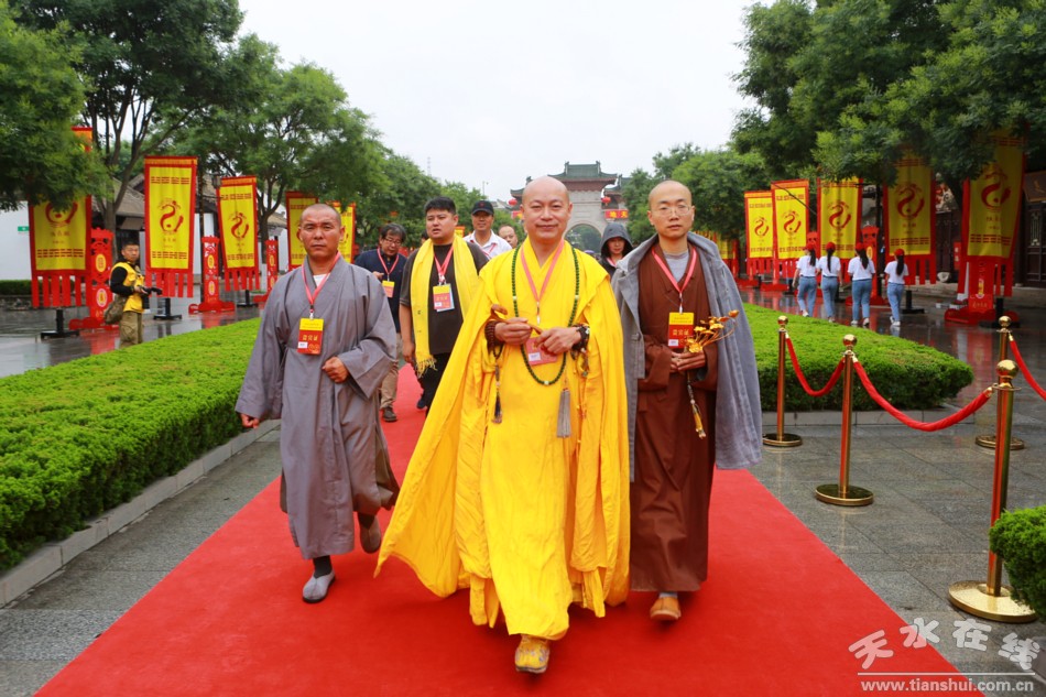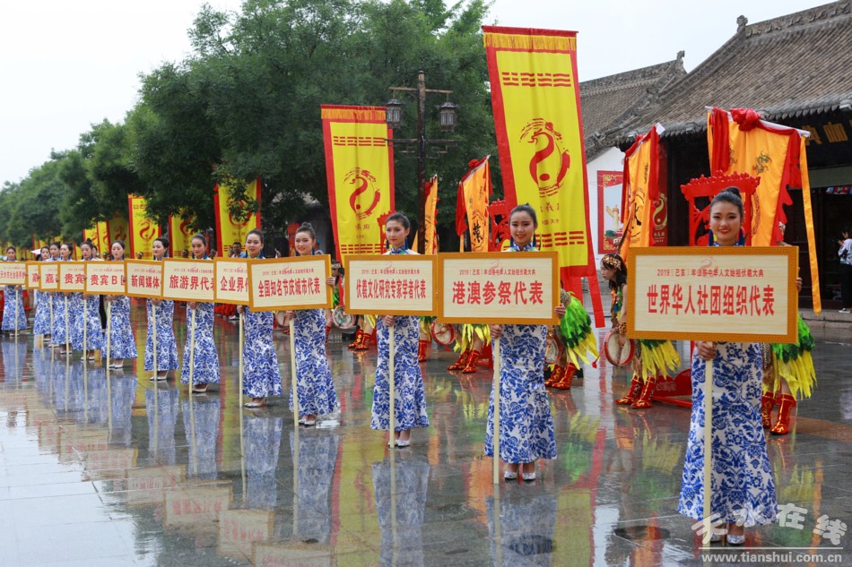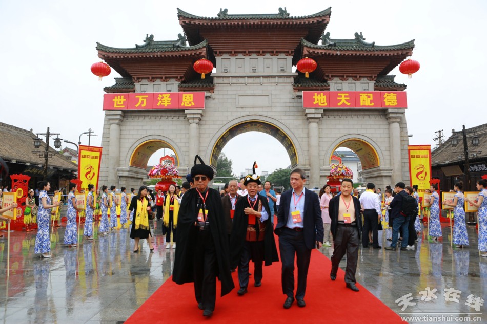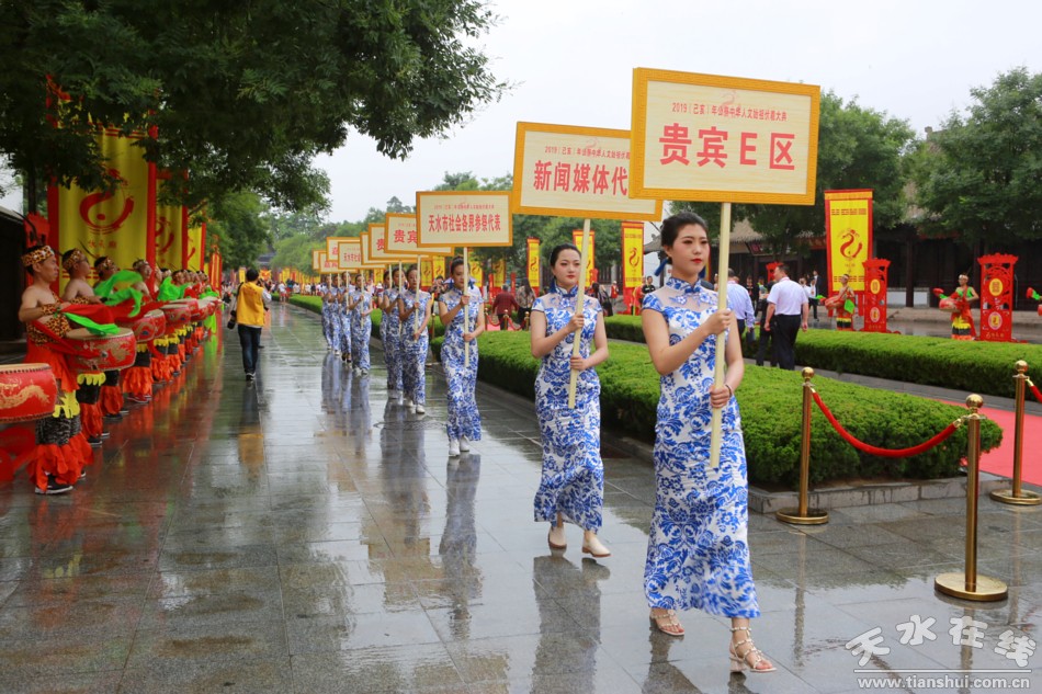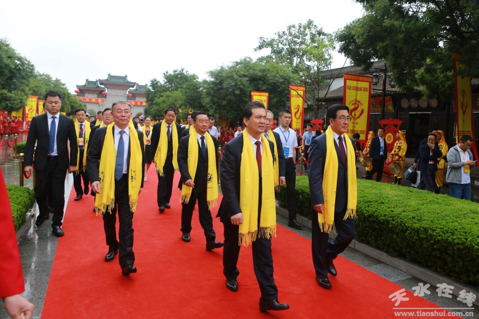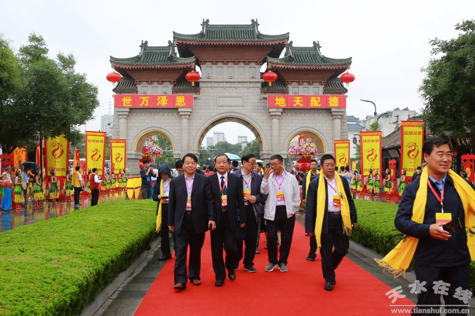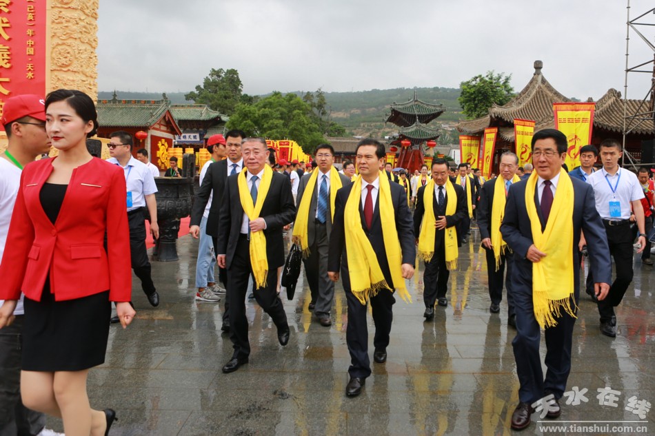 6月22日上午9時(shí)50分,2019(己亥)年公祭伏羲大典在天水伏羲廣場(chǎng)隆重舉行。圖為參加大典的領(lǐng)導(dǎo)和嘉賓步入大典現(xiàn)場(chǎng)。