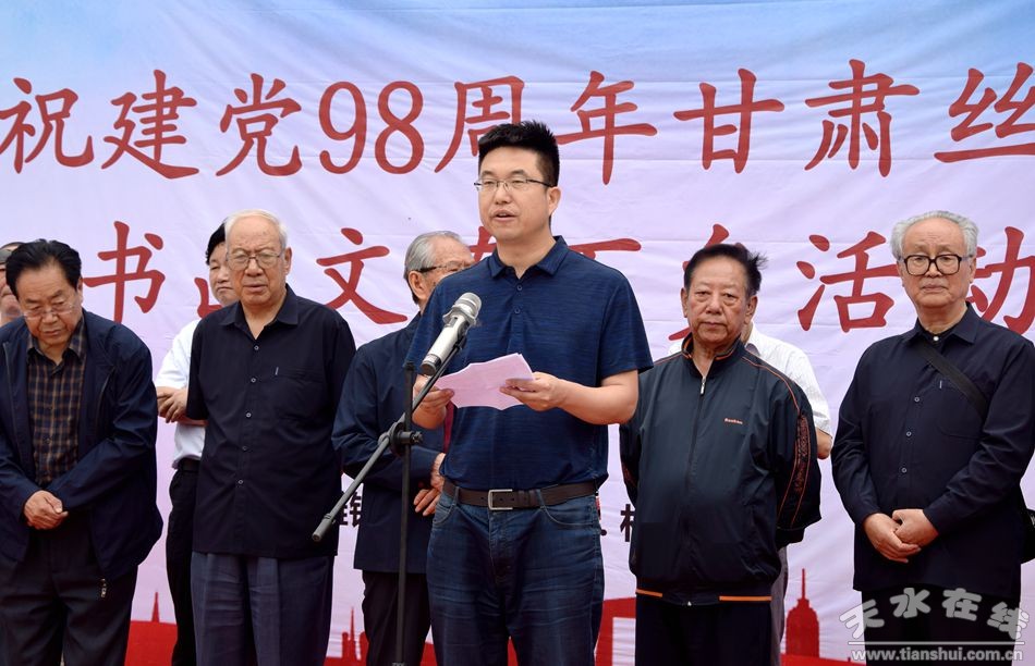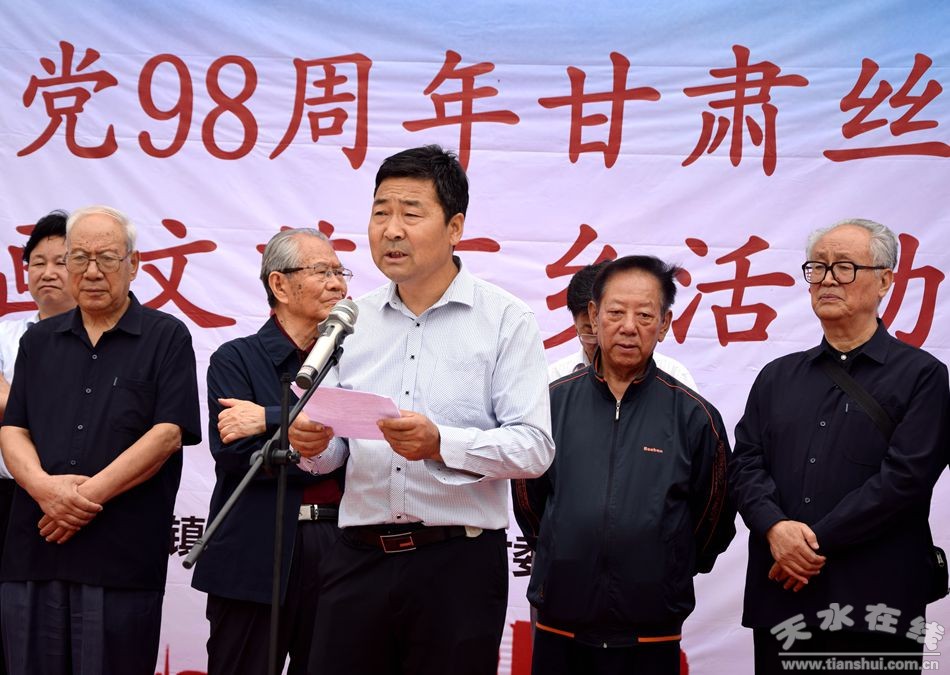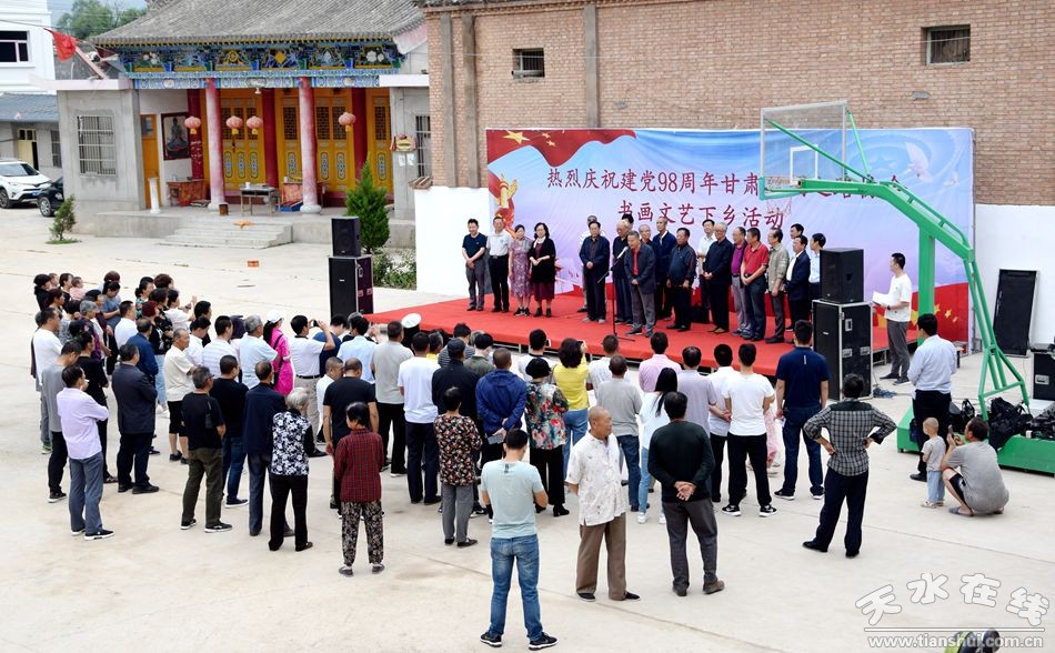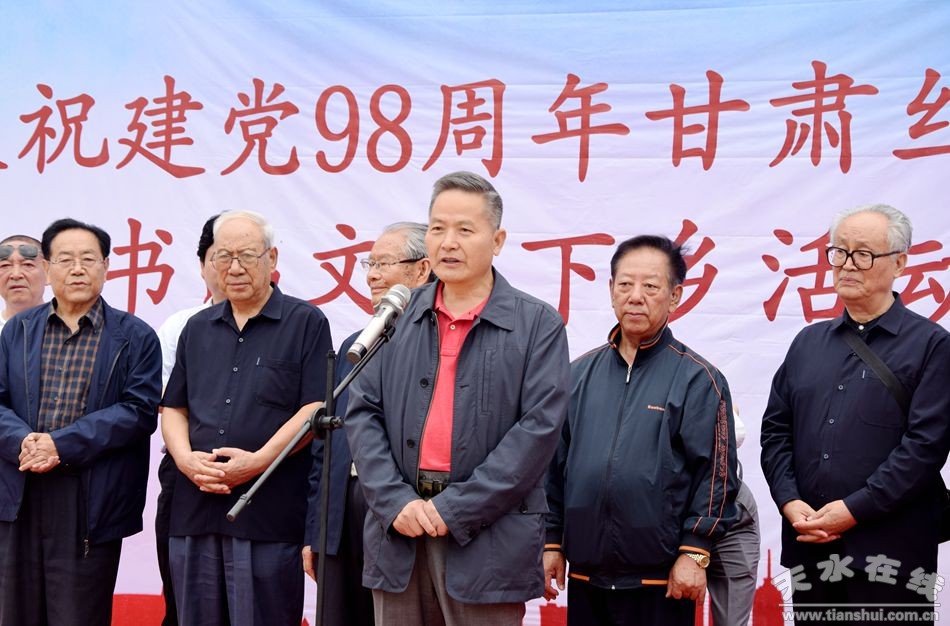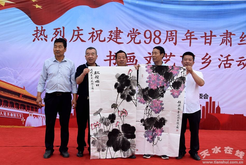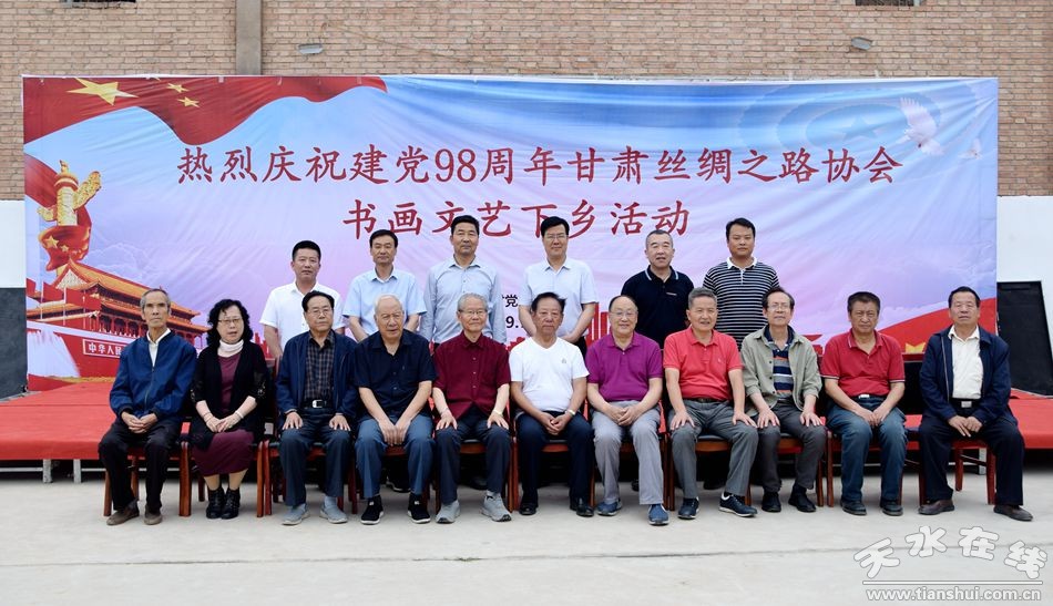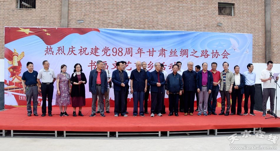 為慶祝中國(guó)共產(chǎn)黨建黨98周年,甘肅絲綢之路協(xié)會(huì)組織部分省、市老領(lǐng)導(dǎo)和書畫家7月3日深入麥積區(qū)中灘鎮(zhèn)毛家村開展送文化下鄉(xiāng)活動(dòng)。